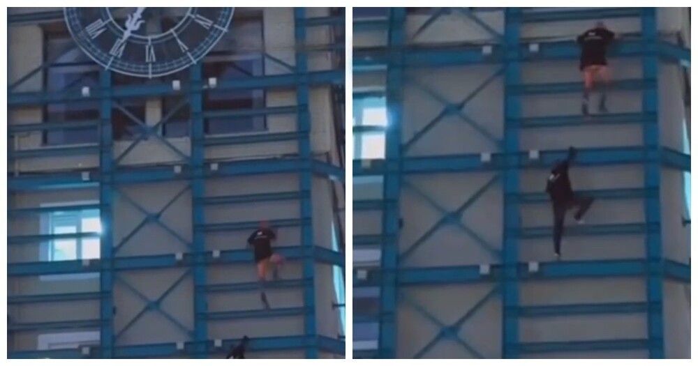 Два «спайдермена» взобрались на башню с часами во Владивостоке