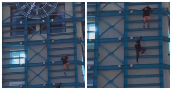 Двое смельчаков решили проверить свои возможности и поднялись на шестиэтажное здание с часами на Океанском проспекте. Прохожие наблюдали за происходящим с удивлением, а всё действие попало на камеры очевидцев.