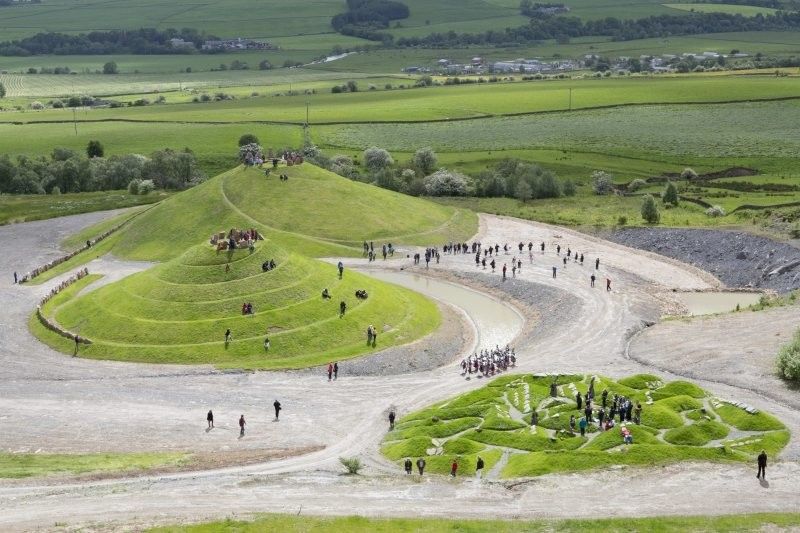 Владелец этих земель недалеко от Санкухара в Дамфрисе и Галлоуэе в Шотландии, герцог Баклю, столкнулся с необходимостью преобразить заброшенную угольную шахту. Он обратился к Чарльзу Дженксу - гуру ландшафтного искусства и создателю знаменитого Сада космических размышлений. Задача была амбициозной: превратить индустриальный шрам в достояние общества.