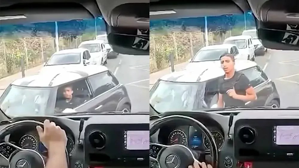 Один из водителей решил срезать путь, выехав на встречную полосу. Однако мужчина, ехавший навстречу, не стал уступать дорогу нарушителю. В итоге "умник" был вынужден сдавать назад под смех очевидцев.