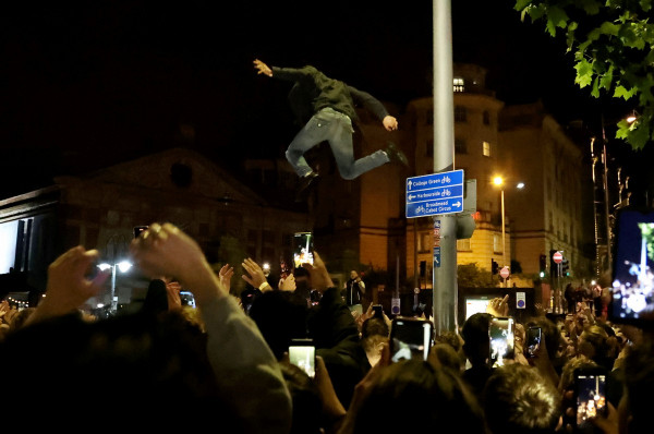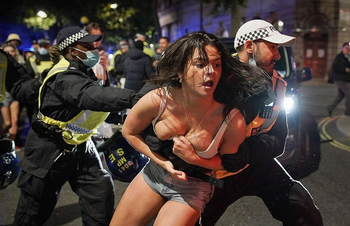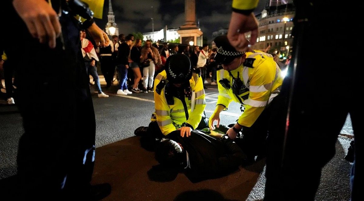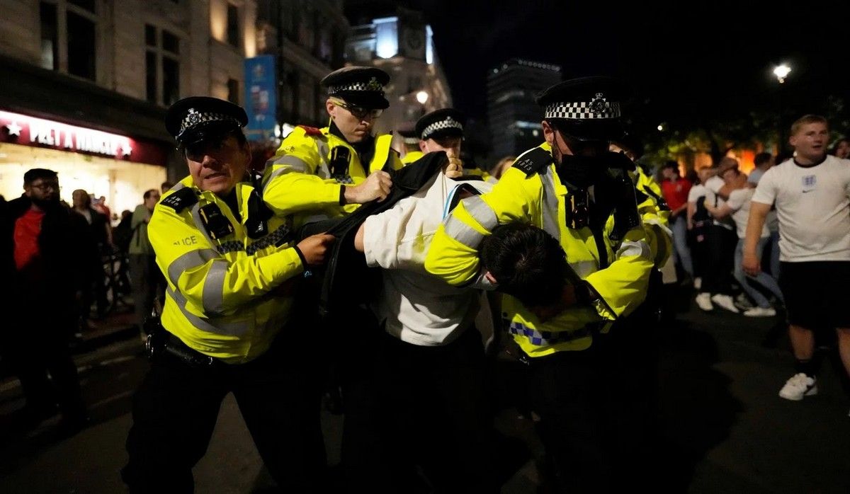 После победы Англии толпы болельщиков на "Уэмбли" вскочили на свои места и замахали флагами. А на Трафальгарской площади Лондона сотни болельщиков перекрыли движение, когда торжества хлынули на улицы.Фанаты с флагами также были замечены, зажигающими красные сигнальные ракеты и выпускающими дым в ночное небо, а около 50 офицеров стояли в сторонке, наблюдая издалека.Автомобильные гудки также раздавались с дорог в попытке присоединиться к празднованию, когда фанаты без рубашек бросали пиво в воздух.Позже полиция сообщила, что сотрудники произвели 20 арестов за ряд преступлений, включая обычное нападение, нарушение общественного порядка и нападение на полицейских.