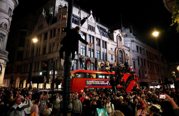 Тысячи болельщиков сборной Англии по футболу веселились всю ночь после исторической победы страны на Уэмбли. Английская сборная победили Данию со счетом 2:1 перед 60 000 зрителей на стадионе Уэмбли. Эта победа является историческим достижением для Англии и завершила их 55-летнее ожидание выхода в главный финал, закрепив их место в воскресном финале против Италии.