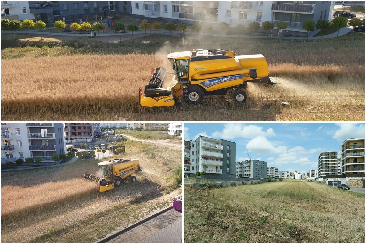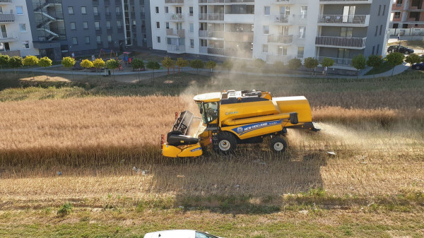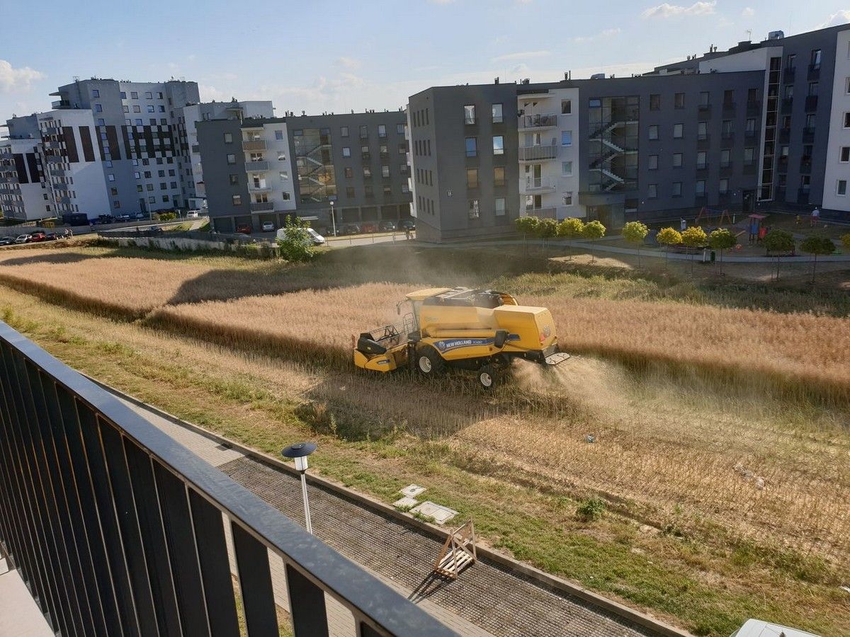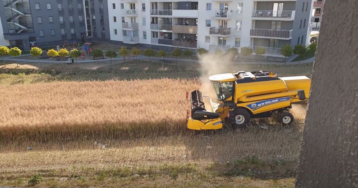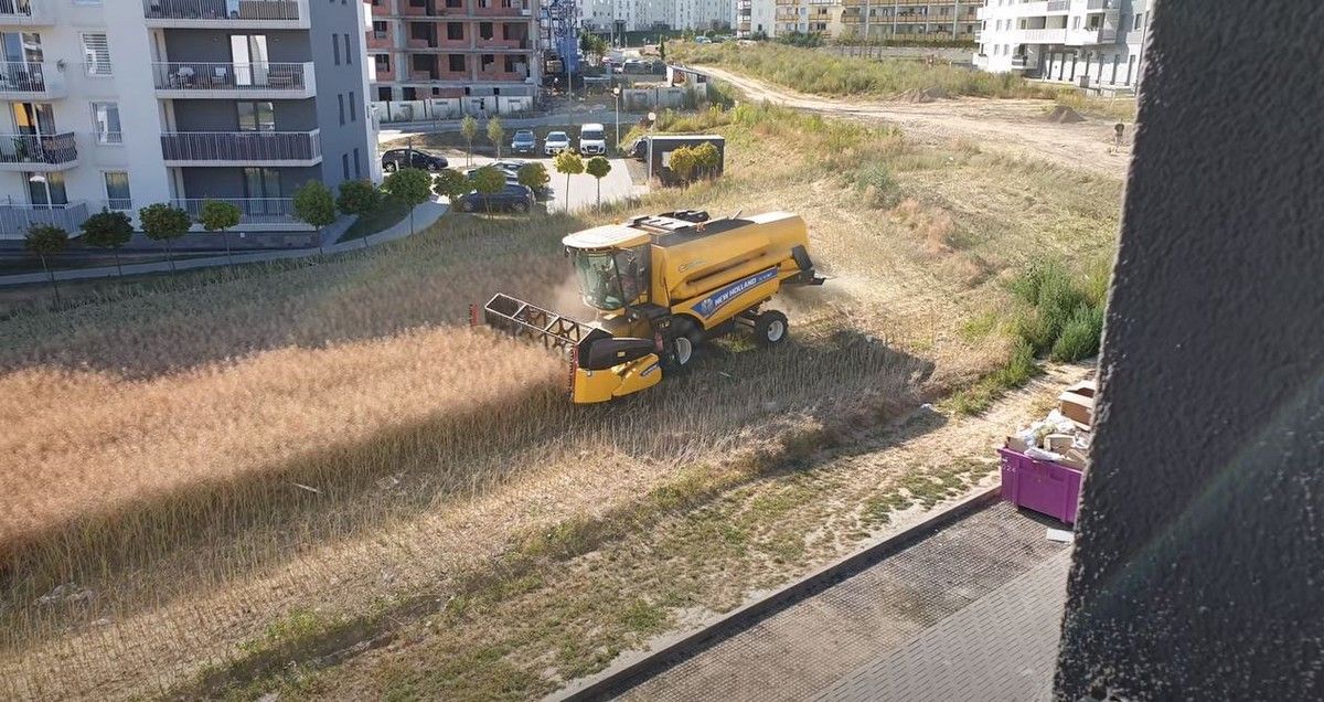 На этих удивительных кадрах запечатлено поле, окруженное жилыми домами, убираемое комбайном. Так происходит, потому что польский фермер Михал Мысловский не продал свой участок девелоперам. В то время как большинство фермеров в Люблине согласились продать свои поля, некоторые собственники, такие как Мысловский, отказались. Это означает, что он продолжает собирать урожай, как и раньше, но теперь поле окружено квартирами на улице Янтарова.