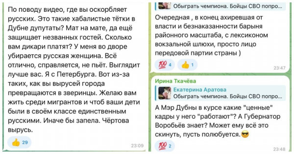 Депутат из подмосковной Дубны Екатерина Аратова обратилась к избирателям, которые, как пишут некоторые каналы, высказались в поддержку недавно принятой концепции миграционной политики в РФ и устроила громкий скандал.Комментируя слова граждан, которые обрадовались тому, что мигранты начинают покидать страну, слуга народа от "Единой России" с использованием нецензурной лексики оскорбила русских мужчин. Она заявила, что они пьют и либо не могут, либо не хотят работать, противопоставив их трудолюбивым мигрантам, без которых благоустройству города, по её мнению, придёт конец."Славяне не умеют работать, либо не хотят. <...> У вас дворник кто, русский человек, рили? Ребята из соседних стран делают ту работу, до которой не могут снизойти наши мужики и поэтому эти булочки достойны лучшего", - заявила Аратова.После разразившегося скандала Аратова удалила со своей странички во "Вконтакте" видео и закрыла аккаунт, но возмущённых людей уже было не остановить. Они начали писать гневные комментарии под постами в её Telegtam-канале. Люди требуют уволить и исключить Аратову из партии, а также проверить её на экстремизм.Но пока официального комментария от "ЕР" не последовало, хотя зампредседателя комитета Госдумы по региональной политике и местному самоуправлению Михаил Матвеев считает, что ей не место партии, поскольку она дискредитирует статус народного избранника."На мой взгляд, здесь имеются признаки уголовного и административного правонарушения. Как минимум - использование нецензурных выражений. Как максимум - 282-я статья УК РФ в связи с тем, что существуют явные признаки дискриминации по принципу принадлежности к этнической общности. И удивительно, конечно, что на таком хабалистом языке разговаривает депутат. Это дискредитирует сам статус. Уверен, что коллеги из партии не оставят в стороне такого рода высказывания. Должна быть жесткая реакция: партийные взыскания, может быть, вплоть до исключения из партии или лишения депутатского мандата. Это просто возмутительно. Надо гнать из органов власти паршивой метлой и заводить на них дело, чтобы другим неповадно было", - сказал Матвеев.
