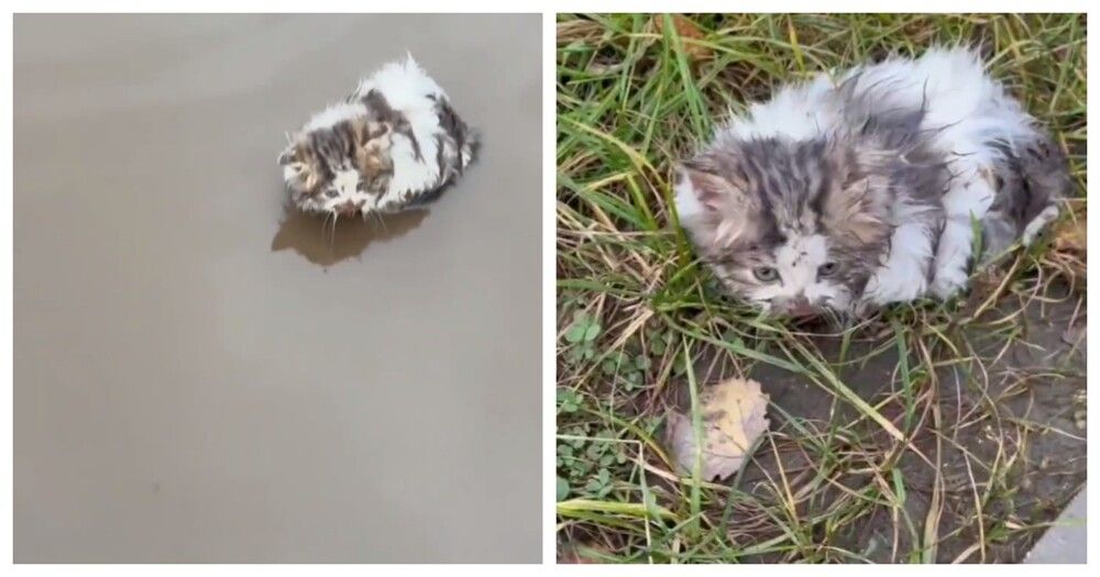 Мокрого и замерзающего котенка нашла женщина в подмосковном Солнечногорске. Малыш сидел в грязной луже и кажется уже не надеялся, что ему протянут руку помощи.