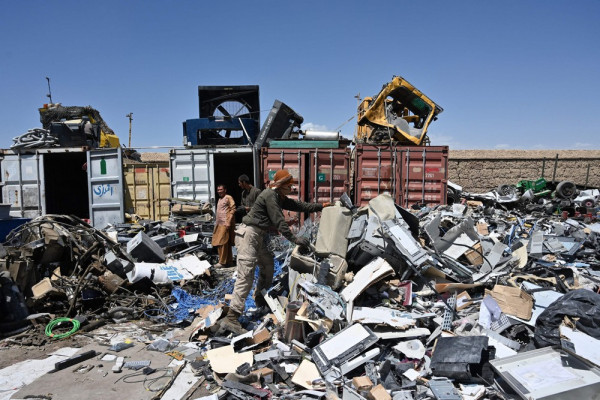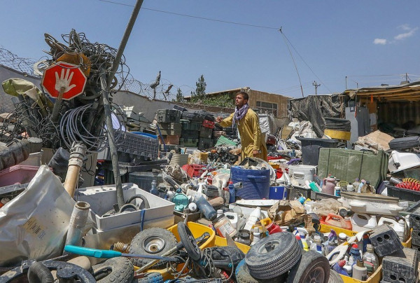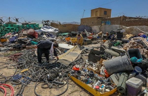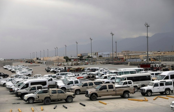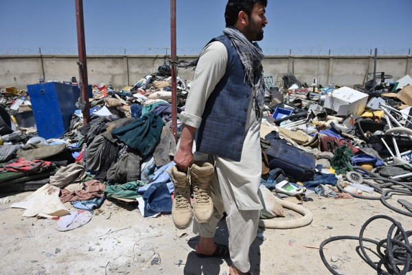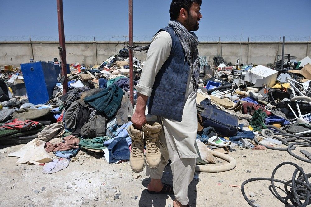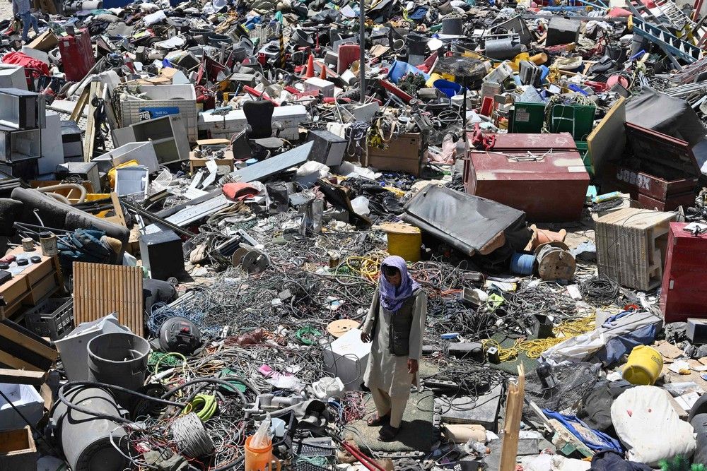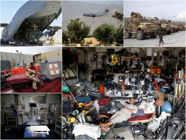 Афганские местные жители начали торговать баскетбольными мячами, стереодинамиками, портативными компьютерами, велосипедами и шлемами, настольными вентиляторами, гитарами и всем остальным, что они могли достать после того, как мародеры разграбили ныне бывшую американскую военную базу, которую покинули уходящие американские солдаты глубокой ночью в пятницу.