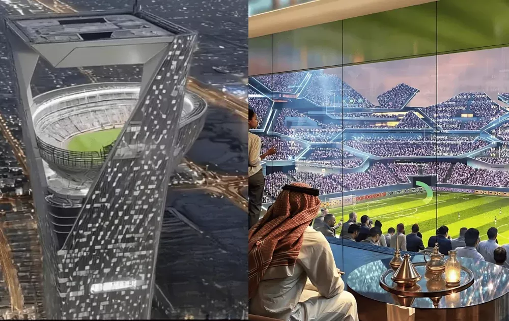 Саудовская Аравия показала проект стадиона на крыше 350-метрового небоскреба. Сооружение будет работать за счет солнечной и ветровой энергии, а на трибунах можно будет разместить 46 тысяч человек.