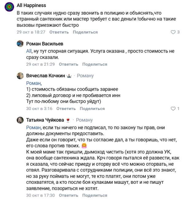 Нажива на пожилых людях - бич нашего времени. Пенсионеров готовы облапошить и телефонные мошенники, и лже-ремонтники, которые берут за свою работу столько, что в голове не укладывается.Одного из таких "специалистов" успели снять на видео в Нижнем Новгороде. Мужчина представлялся мастером по вентиляции и обещал устранить проблемы за 500-1000 рублей. Эту сумму могли себе позволить и пожилые люди, которых убеждали в необходимости чистки вентиляционных шахт, после чего требовали за работу в 10 раз больше озвученного прайса. На эту уловку попался пожилой отец автора видео, однако когда на разборки приехал его сын, "специалист" предпочёл быстро скрыться. И даже не дождался полицию.А вот еще одному пенсионеру - уже из Астрахани - не повезло. За ремонт протекающего туалетного бачка сантехник из объявления, которые обычно раскладывают по почтовым ящикам, запросил более 20 тысяч рублей.