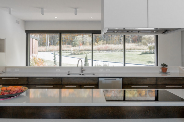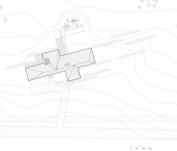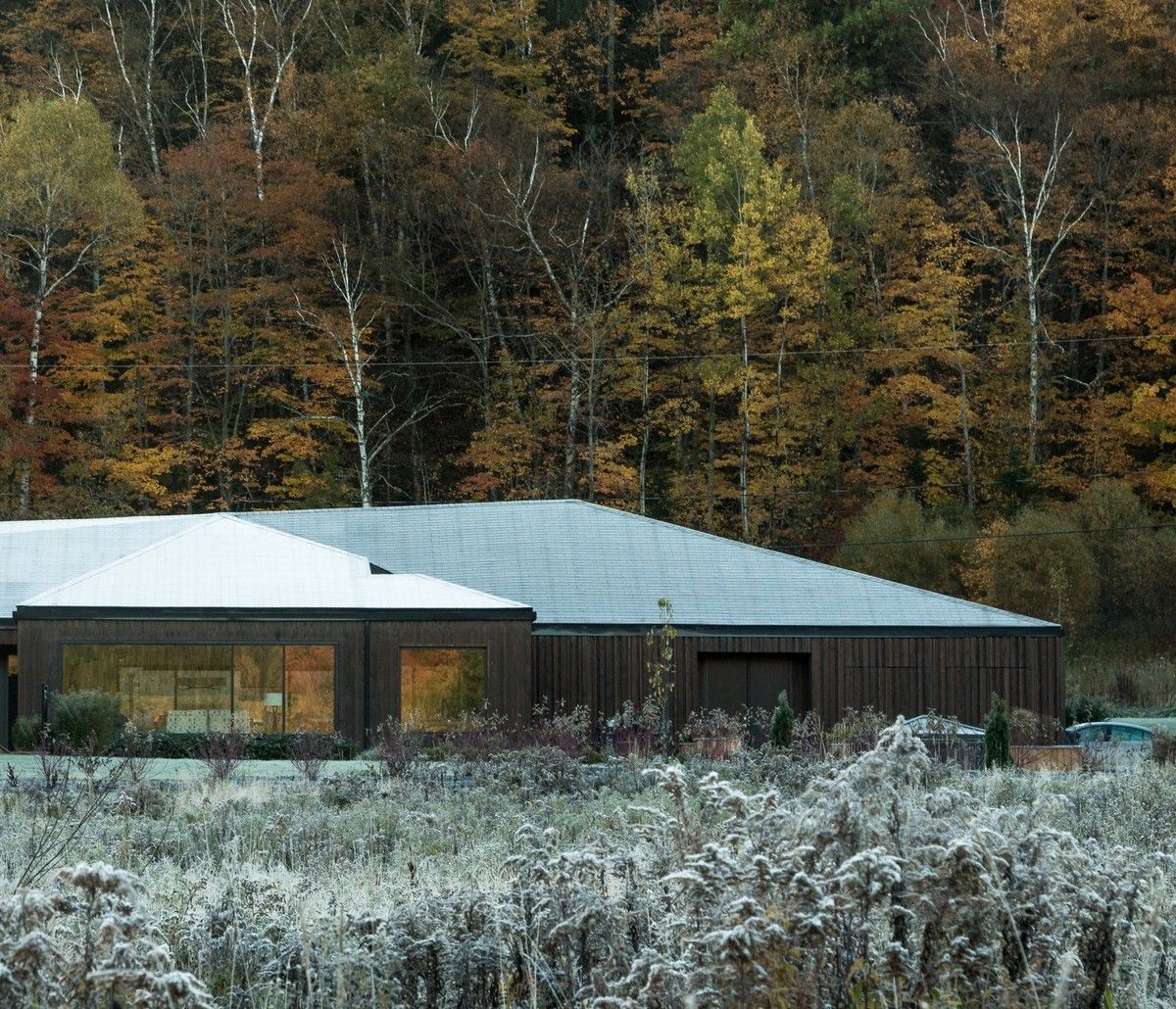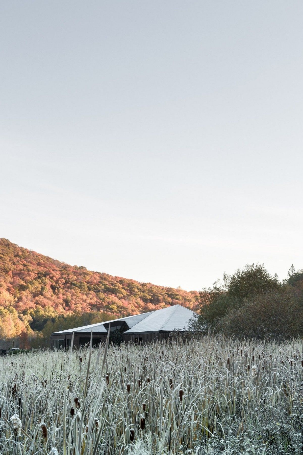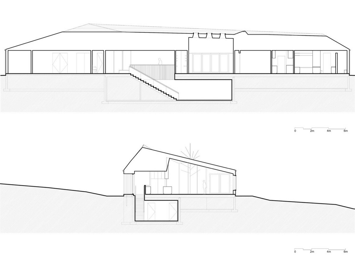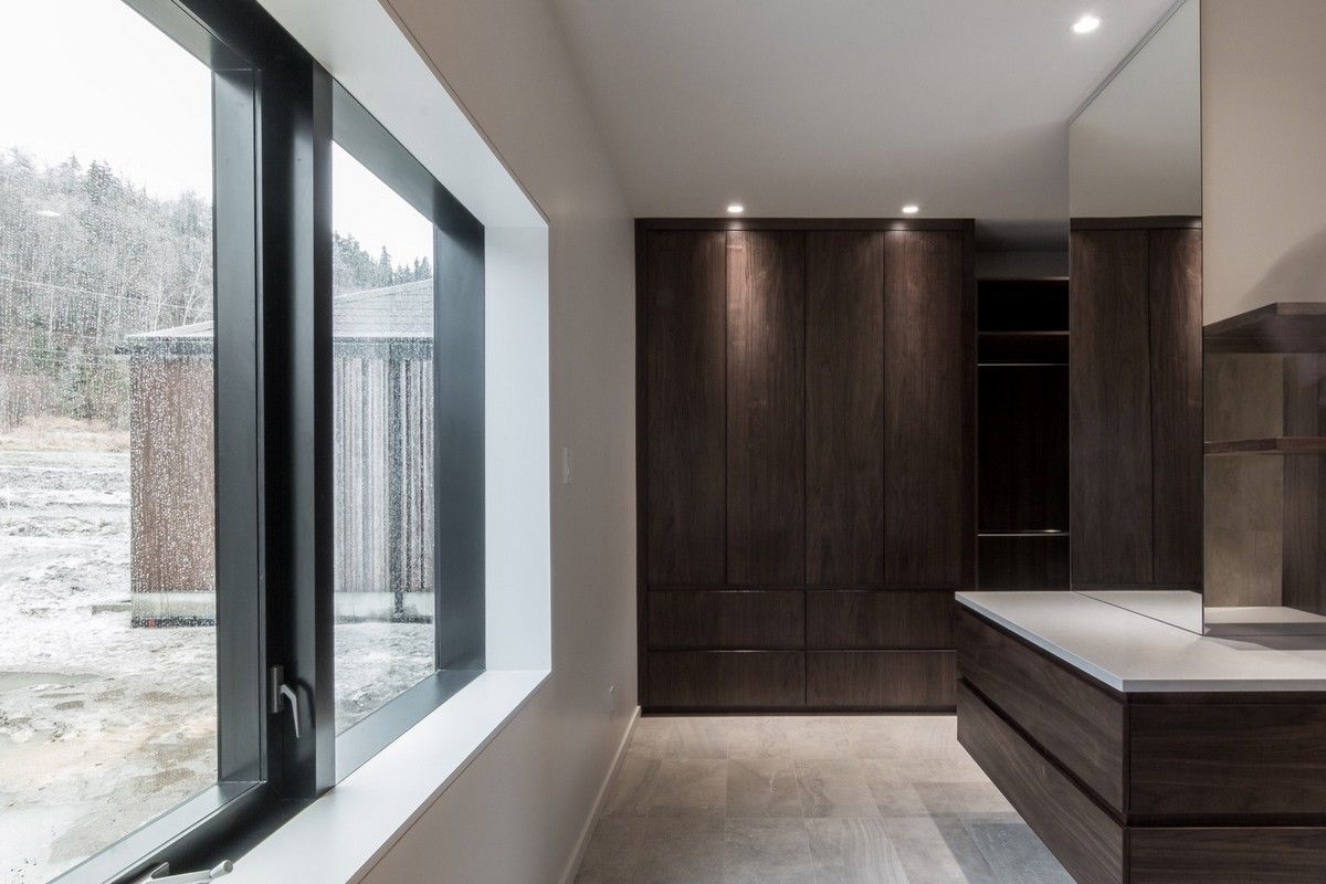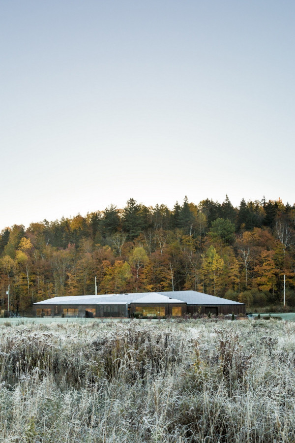 Резиденция расположена на участке, где ранее располагалась съемочная площадка, где были сняты большинство сцен легендарного телесериала 90-х "Эмили. Дочери Калеба". Бескрайние виды, холмистая местность, старые амбары, плетни и дикие цветы: каждая деталь участка бесконечно напоминает об этом историческом повествовании из жизни деревенского Квебека начала XX века.Дом состоит шести спален, двух семейных гостиных, четырех ванных комнат и трех гаражей, расположенных преимущественно на первом этаже.Крыша, с её многочисленными наклонными плоскостями, неправильными углами и линиями, а также полным отсутствием свесов, была задумана как геометрическая интерпретация характерной холмистой местности участка. Вместо слияния с горизонтом, крыша создаёт архитектурный диалог с окружающим ландшафтом. Она бесконечно изменяется в соответствии с перспективой и точкой обзора резиденции.Намерение связать дом и участок авторы проекта достигли благодаря внедрению серии террас, каждая из которых проецирует себя прямо в поле. Главная терраса расположена неподалеку от входа, образуя эффект сжатия. Она вжимает окружающий ландшафт в дом, образуя укромный садик. Идея этого сада продиктована самой архитектурой дома и является производной от работ Райта.Внешние стены из деревянных досок были спроектированы для создания динамичной и уникальной текстуры, определяемой бесконечно меняющимся естественным освещением на протяжении дня и в разные времена года.