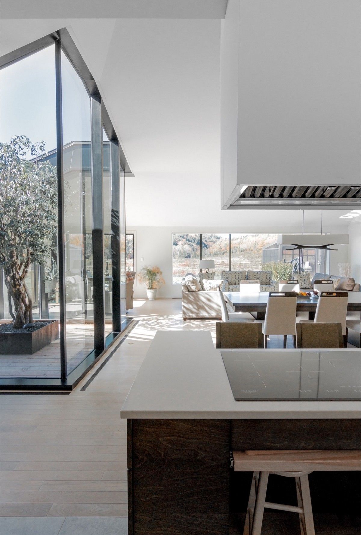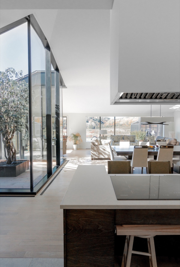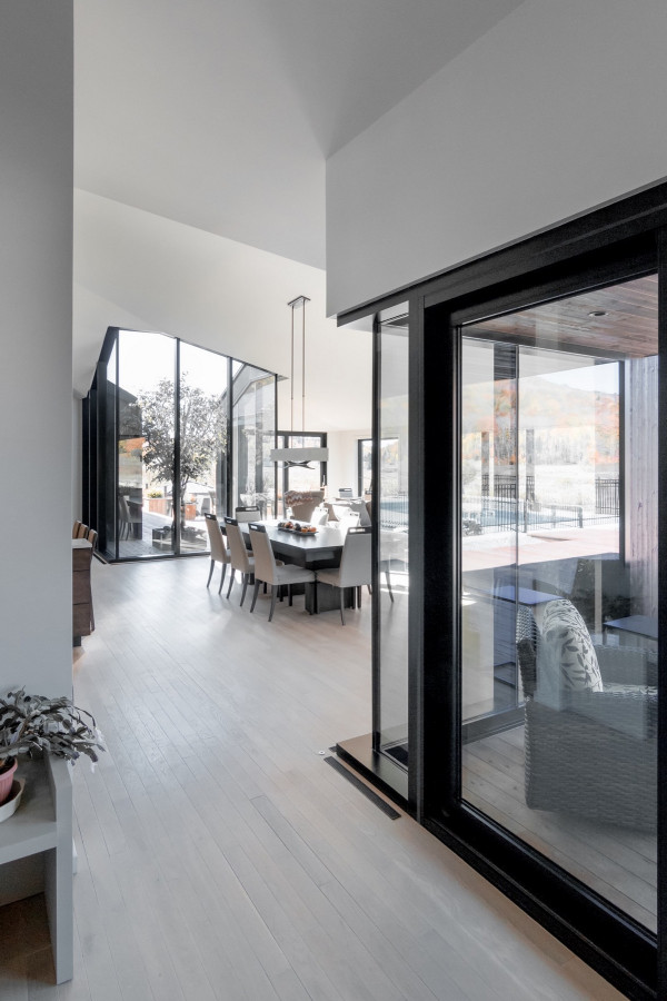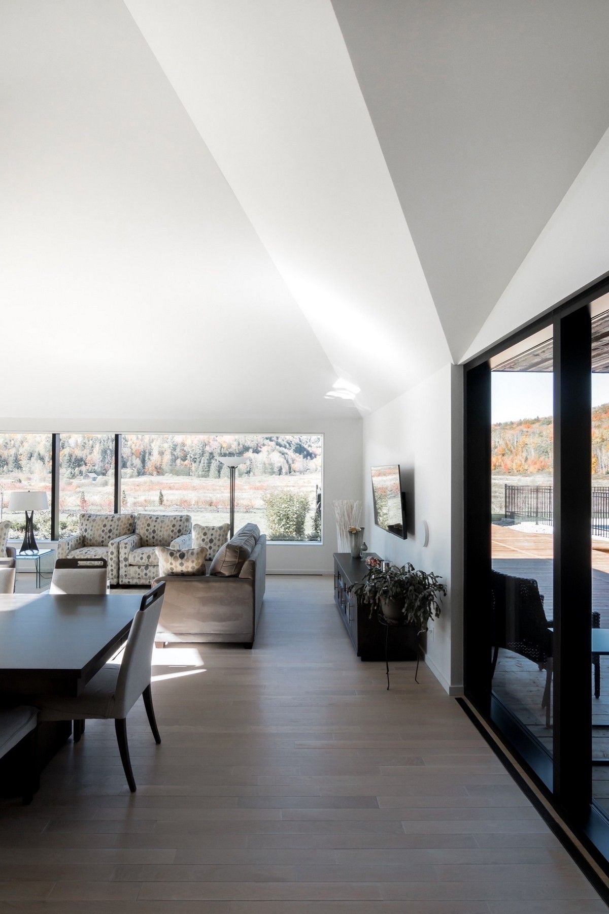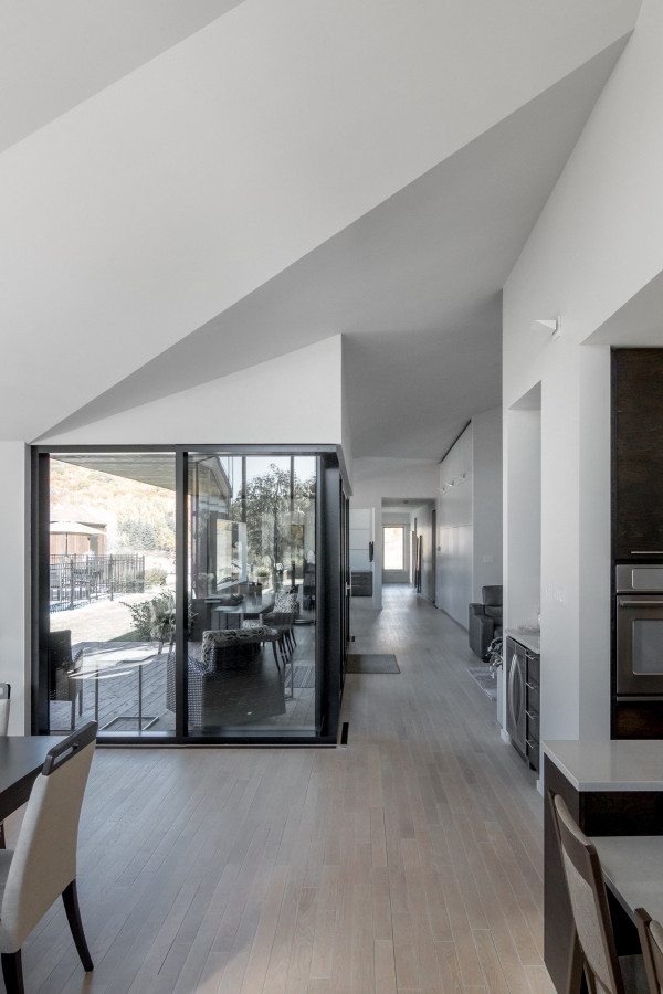 Vallée du Parc Residence - это проект загородного дома, реализованный архитектурным бюро Chevalier Morales Architectes в Валь-дю-Парк, Канада. "Резиденция в Валь-дю-Парк" площадью 434 квадратных метров расположена в сельской долине в Мориси, юго-центральной части Квебека. Планировка первого этажа, навеянная работами американского архитектора Фрэнка Ллойда Райта, возникла в результате комбинации разнообразных террас с автомобилем. Сложная угловатая линия крыши, вступающая в геометрическое взаимодействие с окружающими холмами, привлекает внимание, даже на большом расстояние от дома.