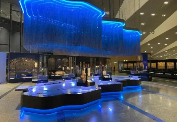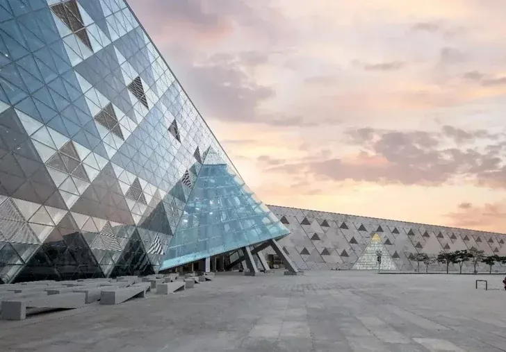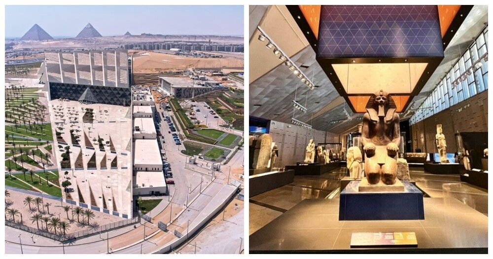 GEM, расположенный рядом с пирамидами Гизы, задумывался как крупнейший археологический музей планеты. Его общая площадь - около 500 тысяч квадратных метров, что эквивалентно 70 футбольным полям.По неофициальным данным, строительство обошлось Египту более чем в 1,1 миллиарда долларов.При входе посетителей встречает 11-метровая статуя Рамзеса II весом 83 тонны, ставшая символом музея. Парадная лестница с величественными статуями древнеегипетских фараонов ведёт к панорамным окнам с видом на пирамиды - специально спроектированным для того, чтобы напомнить: всё это - часть одной цивилизации.Главная жемчужина GEM - полная коллекция сокровищ из гробницы фараона Тутанхамона, впервые представленная публике.На 7000 квадратных метрах выставочного пространства размещены золотая маска, внутренний гроб из литого золота весом 110 кг, колесницы, ритуальные сосуды и знаменитый золотой трон, который археолог Говард Картер назвал "самым прекрасным предметом, найденным в Египте".В соседнем зале - ещё одно чудо: две погребальные ладьи фараона Хуфу, найденные в 1954 году. Первая, длиной 42 метра, уже полностью восстановлена. Вторую собирают прямо перед посетителями - 1700 древних фрагментов реставраторы соединяют вручную, позволяя гостям наблюдать за процессом вживую.