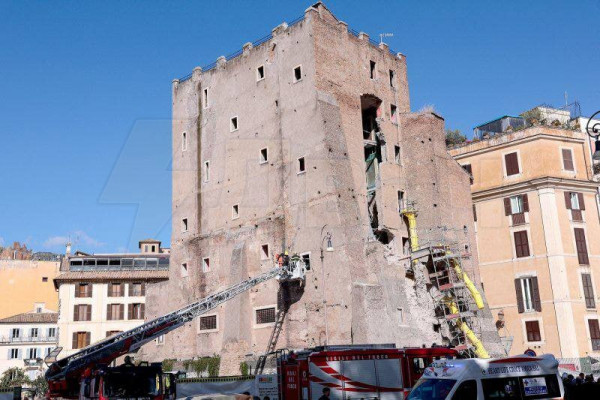 В самом центре Рима обрушилась часть знаменитой исторической башни Торре-деи-Конти, построенной еще в XIII веке - пишет агентство ANSA. Инцидент произошёл утром 3 ноября: прохожие услышали сильный шум, когда фрагмент строения рухнул на тротуар. Улица была перекрыта для движения из-за строительных работ, а рядом в этот момент не оказалось людей, поэтому никто из прохожих не пострадал. Однако в здании находились работники, и из-под завалов достали троих сотрудников. Ещё один - 64‑летний мужчина из Румынии - был заблокирован на первом этаже. Когда спасатели начали его вызволять, произошло второе обрушение.К счастью, и в этот раз обошлось без жертв, но румына пришлось госпитализировать.