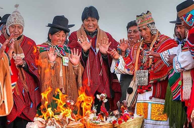 Этот ход, по замыслу авторов, призван вернуть боливийцев к философии коренных народов - аймара и кечуа. Их уникальное мировоззрение представляет прошлое не позади, а впереди человека, поскольку оно уже познано и видимо. Будущее же, как неведомое, остаётся сзади. В качестве научного обоснования приводился аргумент о солнечных часах: в Южном полушарии тень от гномона, являющегося их прообразом, якобы движется против часовой стрелки.