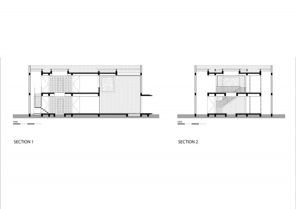 Большая часть экстерьера Wall House состоит из перфорированного квадратного кирпича, который является первый слоем проекта и позволяет свежему воздуху и естественному свету проникать снаружи. Вместо традиционного расположения, кирпичи беспорядочно уложены друг на друга, чтобы создать неровную поверхность и придать дому большую индивидуальность. Второй слой, который направлен на предотвращение негативного воздействия внешней среды на жилое пространство и который создает ощущение пребывания на открытом воздухе - небольшое садовое пространство с множеством листовых зеленых растений и деревьев. Вместе эти два защитных слоя эквивалентны обычной стене, но важным отличием является то, что они обеспечивают циркуляцию воздуха и света, что приводит к более здоровому жилому пространству. Благодаря такому решению дом практически не нуждается ни в вентиляторах, ни в кондиционерах, ни в освещении днем.Напротив входа в дом расположена широкая многоярусная лестница. Ступени произведены с рисунком дыр, который соответствует кирпичной кладке на фасаде. Внутри дома находится просторная жилая зона, освещенная двумя большими квадратными окнами. Еще одним источником естественного света является стеклянная крыша дома. Цветовая палитра была выбрана очень простая - пол покрыт бетоном, а кухонная мебель изготовлена из темного дерева. Лестница выполнена из черного металла с каркасной балюстрадой и ведет на первый уровень дома. Спальни здесь и на первом этаже расположены вокруг пустоты, которая простирается через оба этажа. Дом сохраняет привычный семейный образ жизни, но создает больше общего пространства, чтобы члены семьи могли легче видеть друг друга, усиливая взаимодействие и связь между всеми.