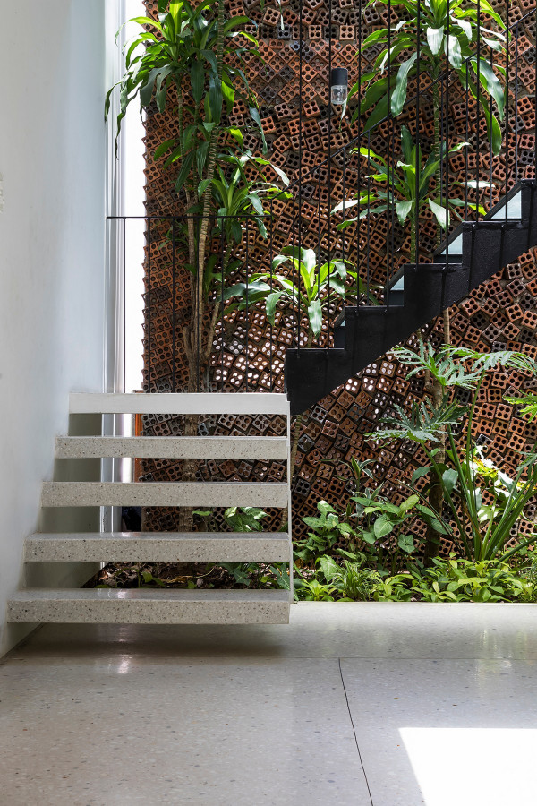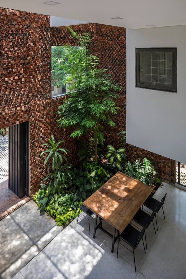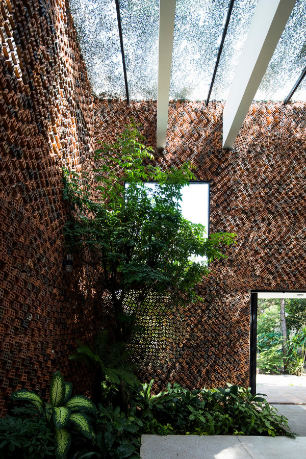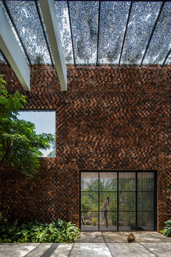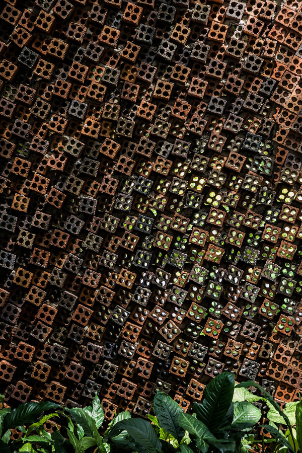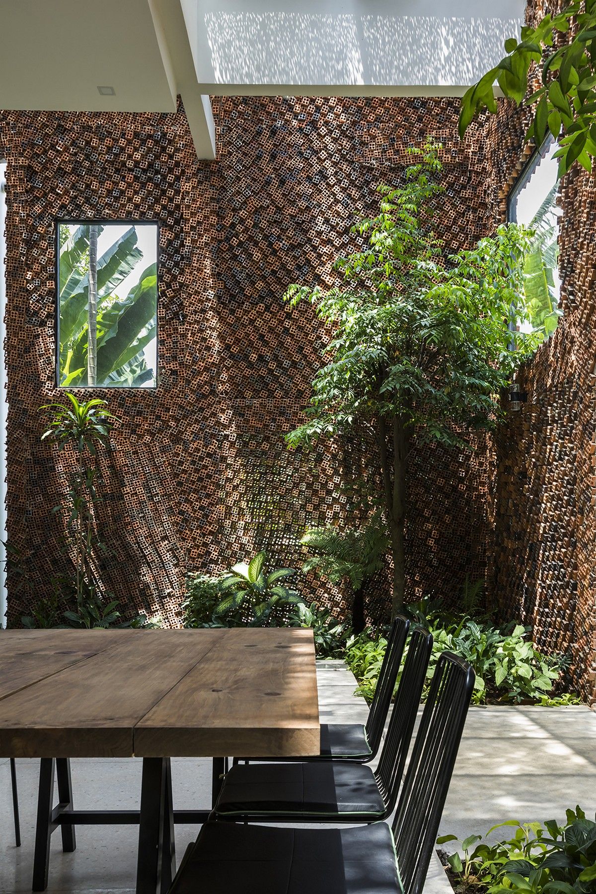 Кирпичи со сквозными отверстиями приносят воздух и солнечный свет в этот семейный дом в городе Бьенхоа, Вьетнам, созданный компанией Creative Architects из Хошимина в 2018 году. Названный Wall House, дом площадью 208 квадратных метров, представляет собой двухэтажный дом с внутренними двориками, растениями и деревьями с жилыми блоками внутри. У клиентов не было четких представлений о том, как дом должен выглядеть, единственное перед архитекторами стояла задача сделать жилые помещения светлыми и просторными. Кроме того, архитекторы взяли за основу идею, что, согласно научным исследованиям, качество воздуха внутри помещения хуже, чем на улице. Итоговый проект дома включил в себя два слоя.