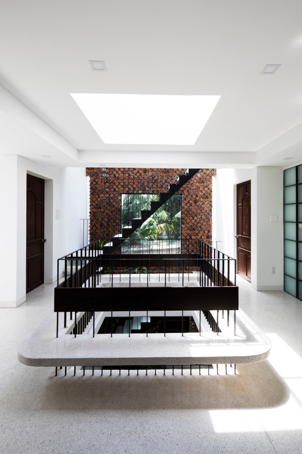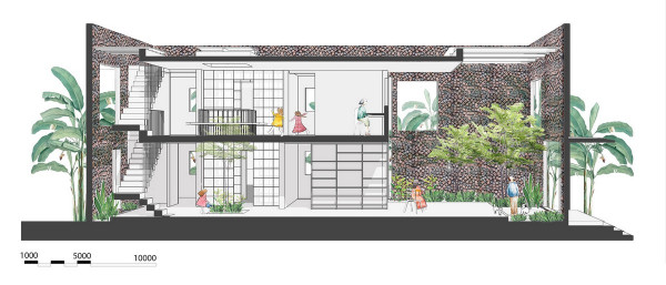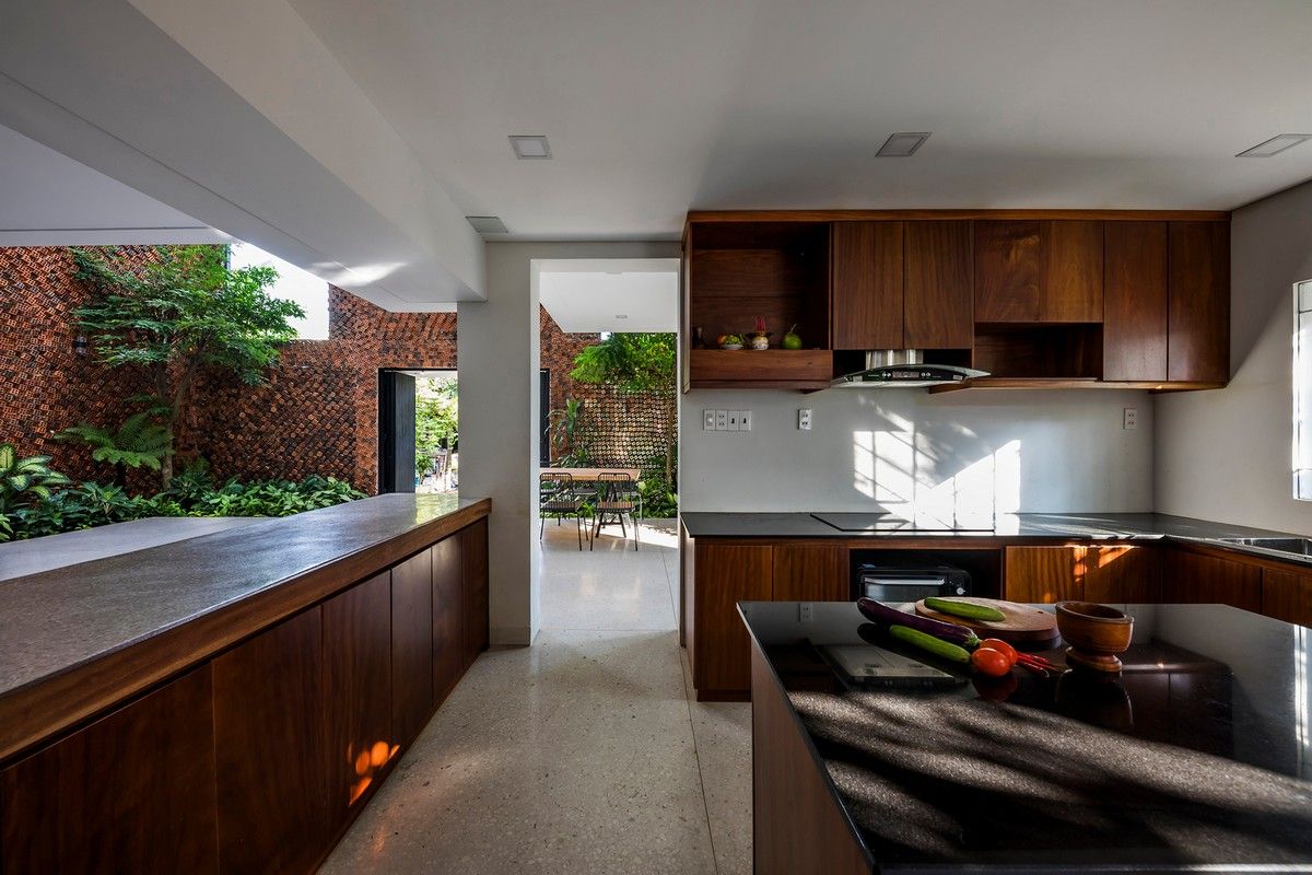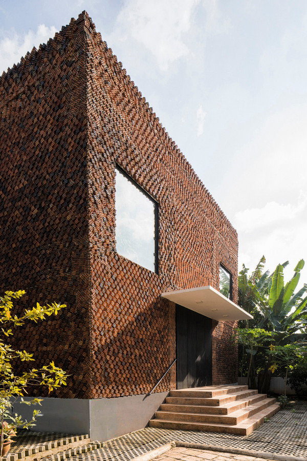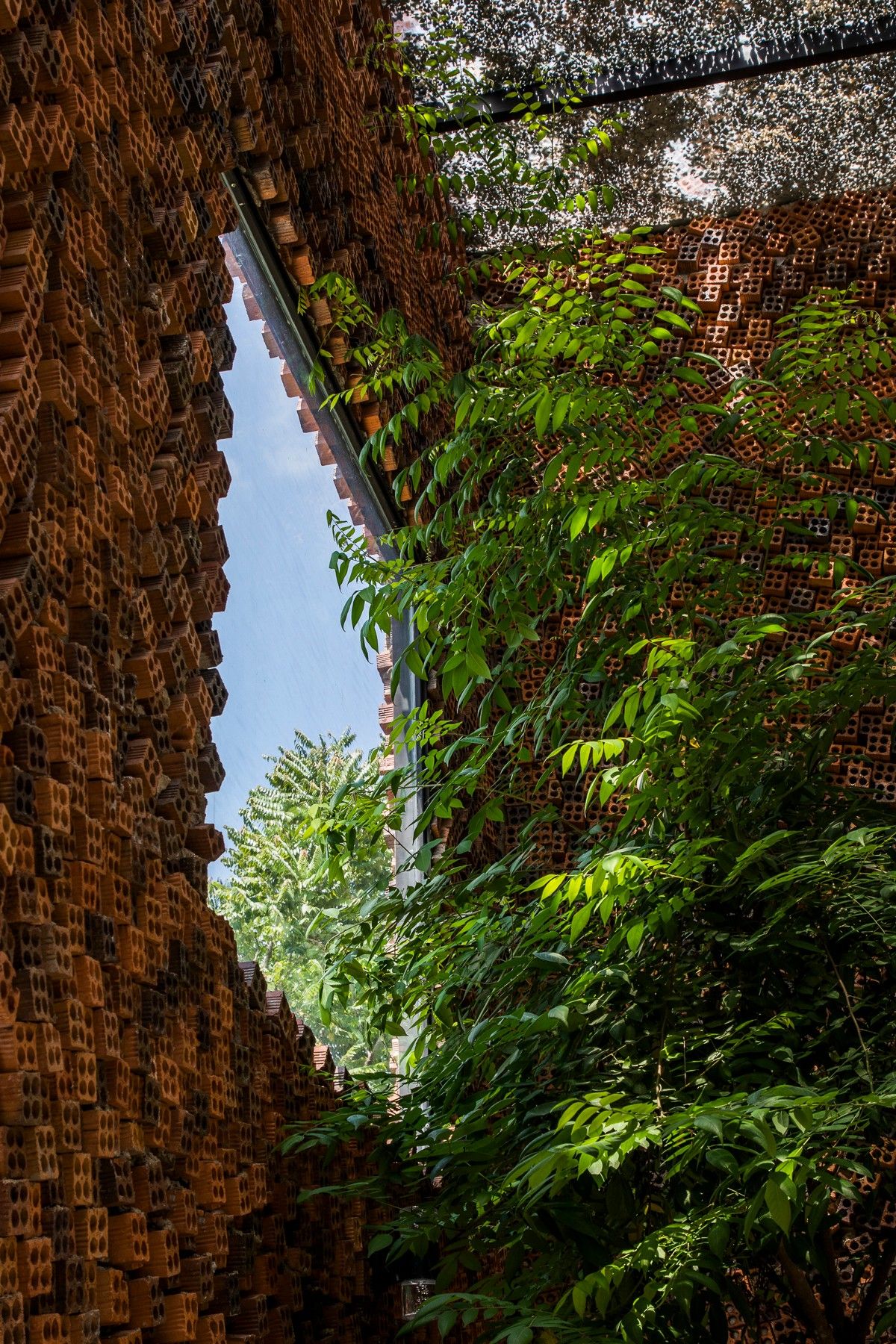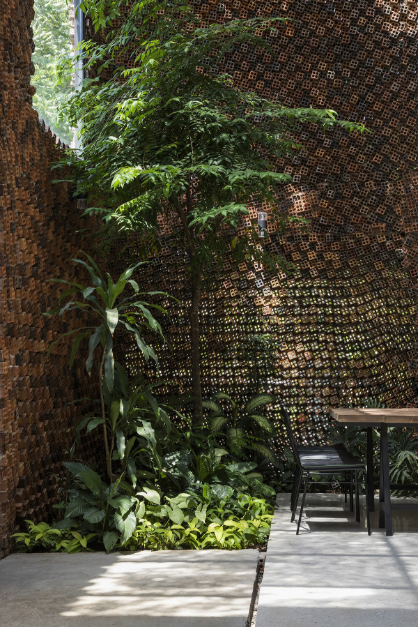 Кирпичи со сквозными отверстиями приносят воздух и солнечный свет в этот семейный дом в городе Бьенхоа, Вьетнам, созданный компанией Creative Architects из Хошимина в 2018 году. Названный Wall House, дом площадью 208 квадратных метров, представляет собой двухэтажный дом с внутренними двориками, растениями и деревьями с жилыми блоками внутри. У клиентов не было четких представлений о том, как дом должен выглядеть, единственное перед архитекторами стояла задача сделать жилые помещения светлыми и просторными. Кроме того, архитекторы взяли за основу идею, что, согласно научным исследованиям, качество воздуха внутри помещения хуже, чем на улице. Итоговый проект дома включил в себя два слоя.