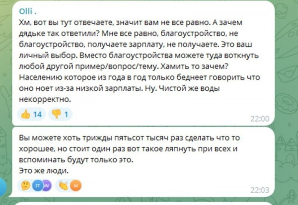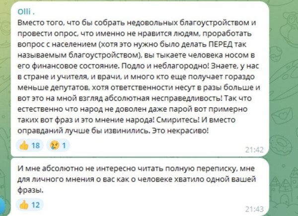 Впрочем, подписчики других мытищинских Телеграм-каналов заметили, что депутат и ранее позволяла себе некорректное поведение, и у них есть к избраннику ряд вопросов.Ранее в Подмосковье уже возникали подобные ситуации с депутатами, получавшими критику за грубое общение с избирателями. После скандалов им приходилось покидать свои посты или приносить публичные извинения. И хотя Оксана Козловская заявляет, что открыта к диалогу, жители Мытищ видят в её комментариях лишь попытки оправдать свои некорректные замечания в адрес простых горожан.