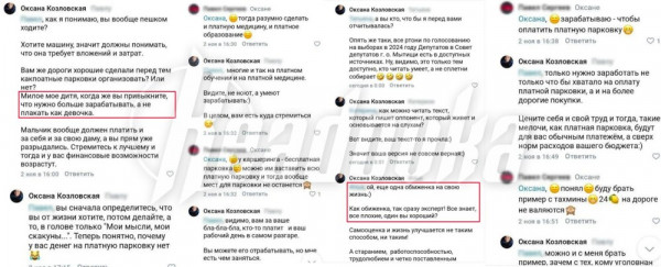 Горожане стали критиковать благоустройство города, из-за которого дворы теперь переполнены автомобилями, а платные парковки закономерно пустуют. В результате получили отповедь от Оксаны Козловской, заявившей, что нужно больше зарабатывать, а не ныть.