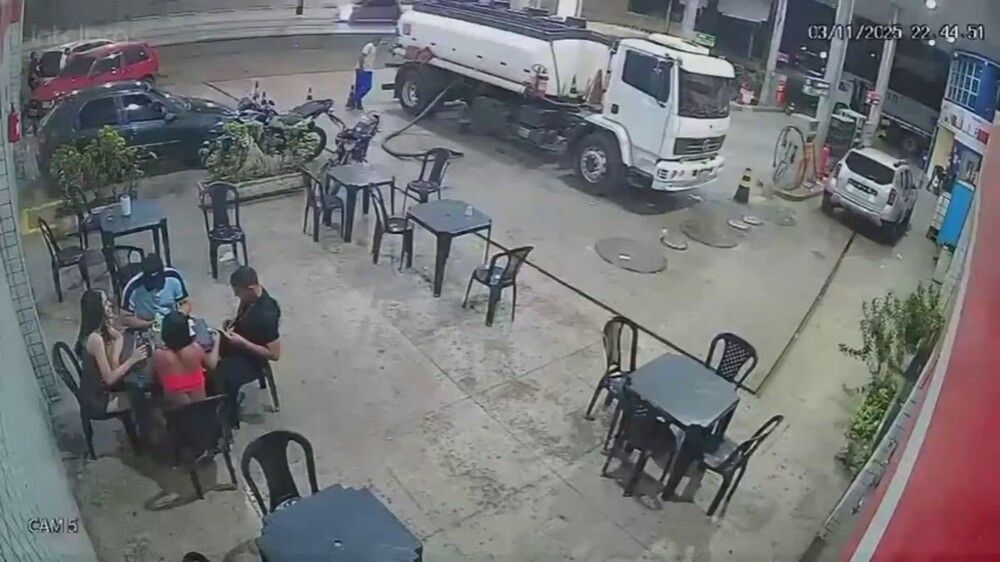 Камера наблюдения, установленная в бразильском населенном пункте Тимон, запечатлела небольшое происшествие возле заправочной станции. К счастью, никто серьезно не пострадал.