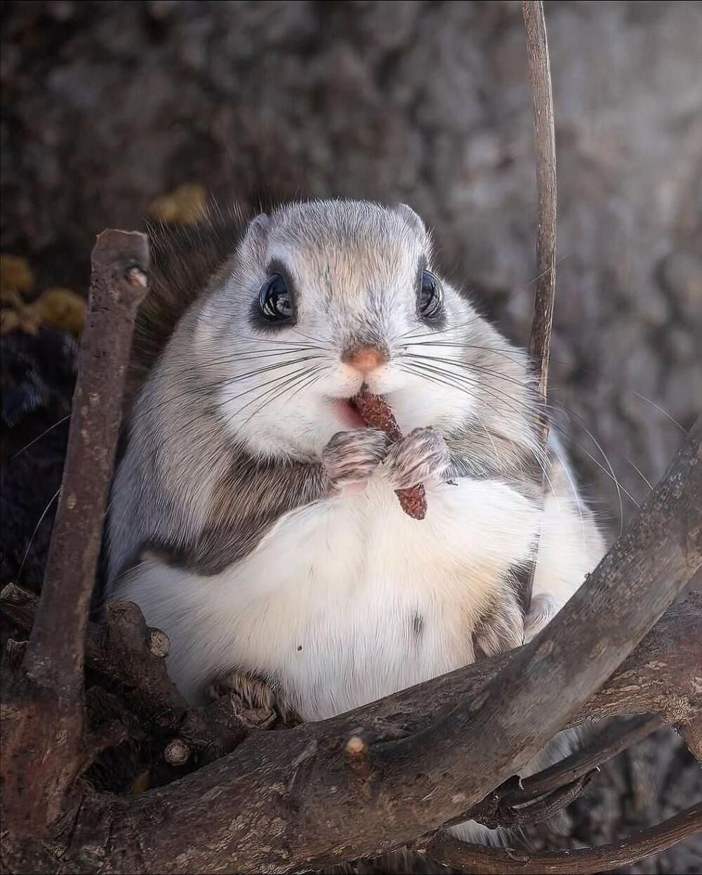 Фотограф заснял одного из самых милых жителей тайги - сибирскую белку-летягу. Эти животные стараются вести скрытный образ жизни, но автор всё-таки смог запечатлеть одну белку.