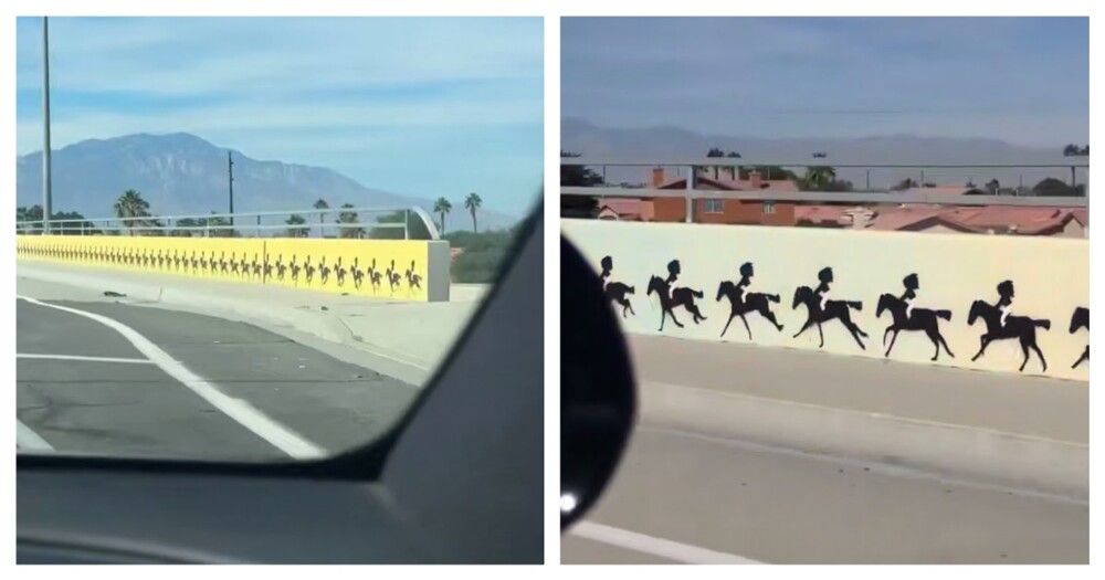 На одной из улиц городка Палм-Дезерт (штат Калифорния, США) можно найти рисунок с эффектом зоотропа. Если ехать вдоль рисунка с определённой скоростью, то он "оживает".