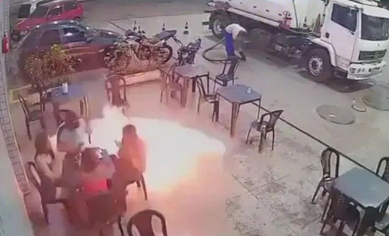 Мужчина, сидевший за столиком в кафе рядом с АЗС, решил покурить. При этом курильщик додумался бросить зажжённую спичку на асфальт, находясь всего в нескольких метрах от фуры, которую заправляли топливом.