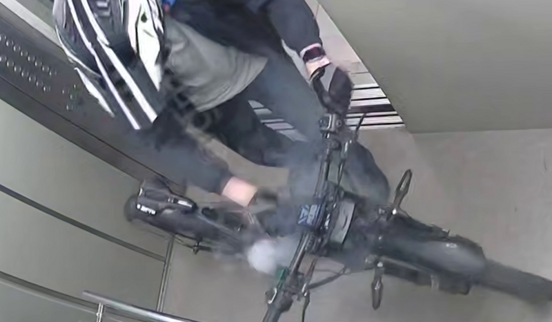 Мужчина зашёл в лифт с электровелосипедом, когда аккумулятор внезапно задымился и вспыхнул. Он быстро среагировал: выкатил велосипед в подъезд, а затем вынес на улицу, предотвратив возможный пожар.