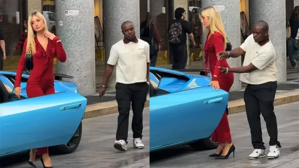 Сцена будто из фильма: глянцевая блондинка выходит из спорткара, и тут появляется герой - с наручниками и чрезмерной верой в собственное обаяние.