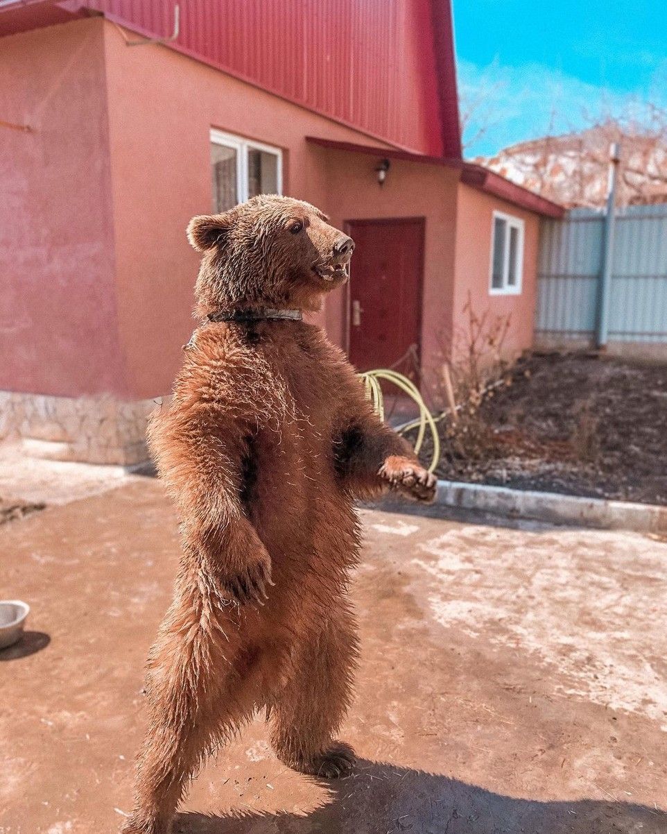 Руслан приобрел Балу во время пандемии, когда зоопарки начали терять деньги из-за отсутствия посетителей, и теперь они живут вместе.Устрашающий медведь каждый день наслаждается водными процедурами и плаванием.Подруга и фотограф Анна Пригородова рассказала: "Медведь любит принимать ванну каждый день.- Он залезает сам, когда видит, что ванна полна.- Балу плавает 15-20 минут и начинает баловаться".Ранние годы Балу провел в зоопарке в Саратове, где его подобрал владелец Руслан во время пандемии, которая нанесла ущерб финансам многих зоопарков.Саратов - крупный портовый город на Волге на юго-западе России, в 241 миле от Волгограда и в 533 милях к юго-востоку от Москвы.Россия имеет одну из самых больших популяций бурых медведей в мире: по оценкам, около 120 000 бурых медведей живут в российских лесах, а многие находятся в неволе.