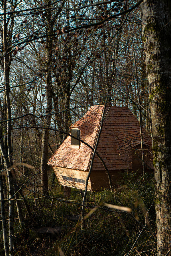Проект небольшого дома был разработан AA Design and Make studio в 2020 году и возведен в лесах графства Дорсет Великобритании. Домик представляет собой небольшую деревянную постройку, дизайн которой находится на стыке ремесленных знаний, инновационных технологий и природных материалов.
