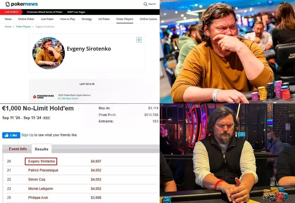 Издание Pokernews сообщает, что Сиротенко регулярно играет в Circus Club Paris, и бывает - успешно. Это же подтверждается таблицей турниров, в которых участвовал Сиротенко в его профиле в
