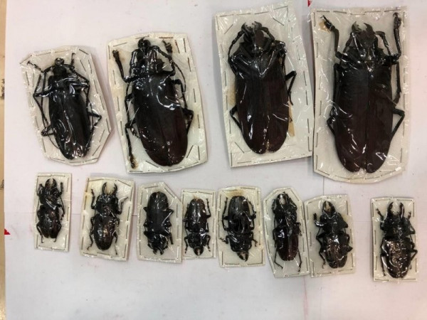 На видео показано, как правоохранитель в Москве вскрывает белую коробку и достает насекомых, каждое из которых прикреплено к картонной подложке.По данным правоохранителей, в прибывших из Перу посылках обнаружено 200 высушенных экзотических жуков. Общая стоимость насекомых составила 1,5 миллиона рублей. Их удалось найти при помощи рентген-установки во время досмотра двух почтовых отправлений, идущих в Ставропольский край.Необходимые сопроводительные разрешительные ветеринарные документы на ввоз отсутствуют. Из-за этого посылки возвращены отправителю.Как установила экспертиза, жуки - это трофеи неотропического царства. Среди них - крупнейший в мире ночной дровосек-титан длиной почти 20 сантиметров, а также жуки-долгоносики и носороги из семейства пластинчатоусых.