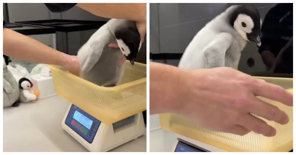 Работники океанариума аккуратно удерживают маленького пингвина, чтобы взвесить его, а потом угощают вкусной едой. Такое видео невозможно смотреть без умиления - невероятно милый процесс заботы о животном.