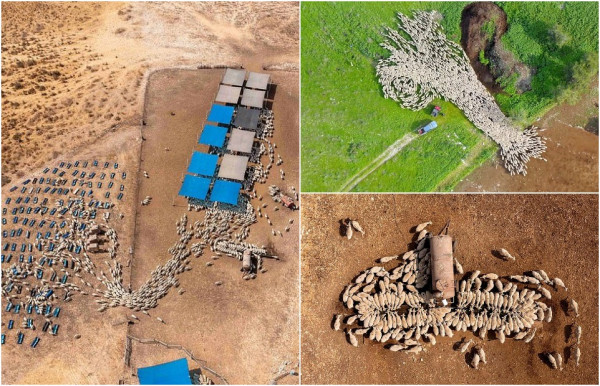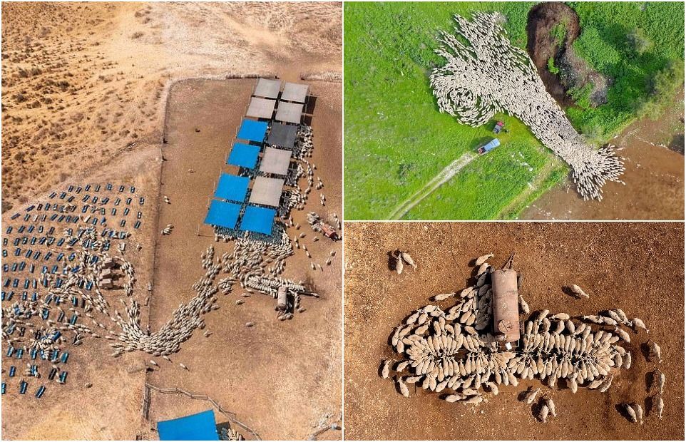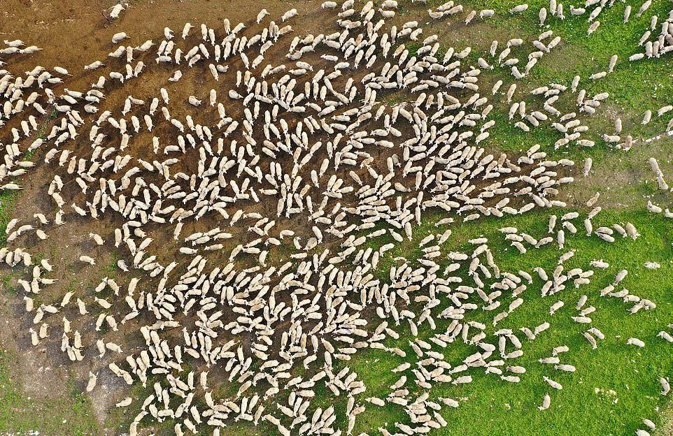 Фотограф с помощью дрона превратил стадо овец в движущееся произведение искусства
