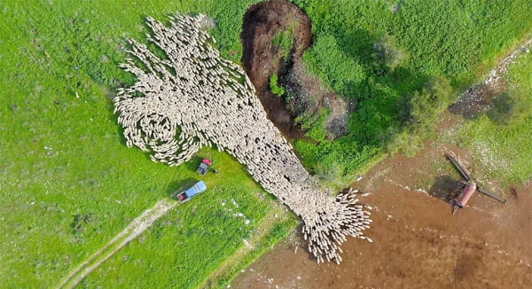 Фотограф с помощью дрона следил за движениями стада овец в течение семи месяцев, чтобы создать завораживающее видео с временным интервалом. 42-летний Лиор Патель (Lior Patel) снял потрясающие кадры в Долине Мира в Йокнеаме, на севере Израиля. Он следовал за стадом, которое насчитывало от 1000 до 1750 голов, пока их пасли между зимним и летним пастбищами. Полученная аэрофотосъемка показывает, что овцы рассеиваются и собираются в ряд образований, напоминающих стаи скворцов в полете.