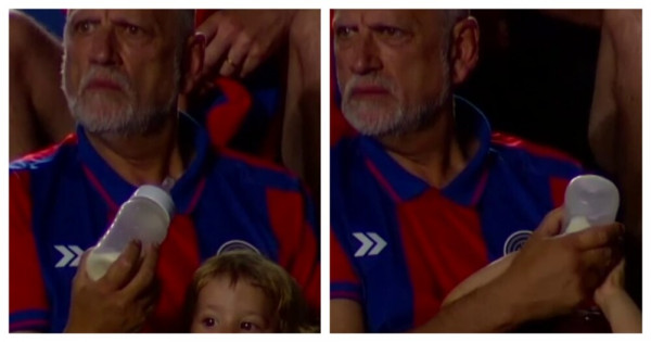 Болельщик аргентинского футбольного клуба "Сан-Лоренсо" настолько сосредоточился на игре, что начал кормить волосы ребёнка.