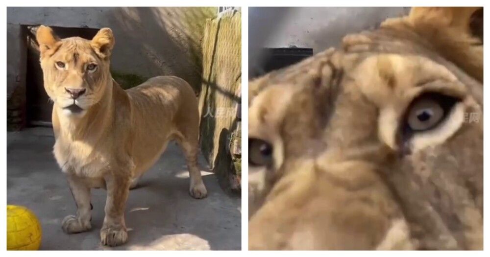 Интернет в восторге от необычной обитательницы китайского зоопарка. Из-за врождённой особенности у львицы непропорционально короткие лапы.