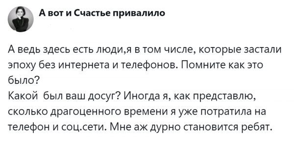 Они и понятно. Работа, учёба, отдых, развлечения - всё связано с Сетью. Без неё не сделать покупки, не вызвать такси, не заказать билеты, не сыграть в любимую онлайн-игру. Но старшее поколение ещё помнит времена, когда интернета не было, а свободное время можно было посвящать другим - интересным и полезным занятиям. Пользователи поностальгировали по доинтернетной эпохе и обсудили плюсы и минусы жизни без Всемирной паутины.