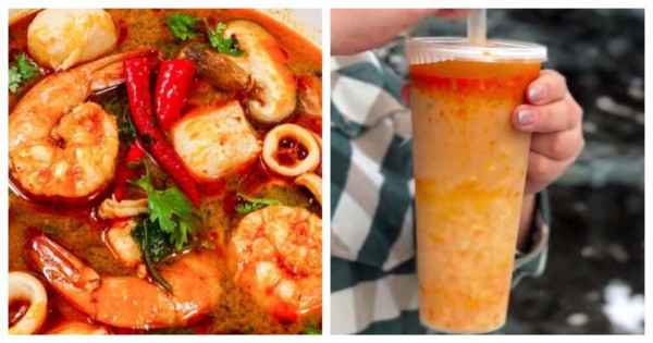 Ресторан в Казахстане решил удивить своих клиентов. В меню на некоторое время добавили суп Том ям, который можно взять с собой в дорогу. Острый, кисло и пряный тайский суп клиентам приносят в стакане с крышкой и трубочкой.