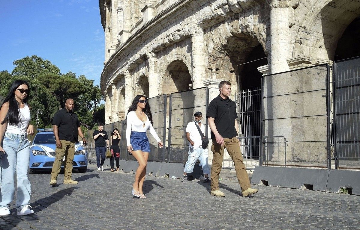 40-летняя американская звезда реалити-шоу, актриса и фотомодель Ким Кардашьян (Kim Kardashian) наслаждалась отдыхом в Риме с друзьями и большой свитой.