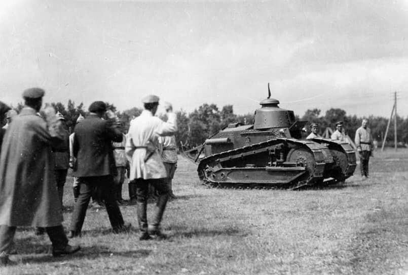 Смотр 1-го танкового дивизиона Народно-революционной армии Дальневосточной республики. Благовещенск. 6 апреля 1921 г.И наконец, в ходе советско-польской войны 1920 г. Красной армией было захвачено 6 танков "Рено" FT-17. Из числа поставленные Францией Польше "Рено" FT-17, в количестве 120 экземпляров. Всего поляки потеряли 20 машин. Но нашими трофеями стали всего 6 из них. Ещё одной машиной этого типа стал итальянский танк "Фиат-3000". Имевшийся в Красной армии в 1920-е. Про него говорят всякое. И что это был подарок купленный польскими рабочими и операция советских спецслужб. Но тут одно другому не мешает, и могло иметь место, и одно, и другое. А в результате машина оказалась в СССР.