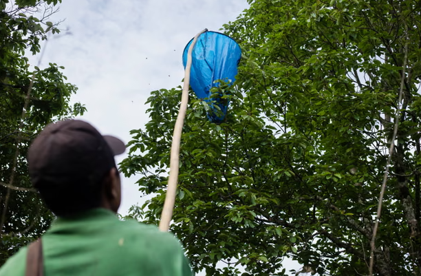 Но индийское племя сделало специальные орудия для ловли клопов. Это такая сеть с длинной бамбуковой ручкой. Когда наступает пора цветения бамбука, "клоповые охотники" из мизо начинают сильно трясти стволы и стукать по ним этой сетью, чтобы сбросить насекомых прямо в нее. Что-то вроде сбора яблок и груш в макушек деревьев. Когда мешок наполняется, узкий конец сетки снизу развязывают, и улов высыпают в джутовые мешки у подножия деревьев.