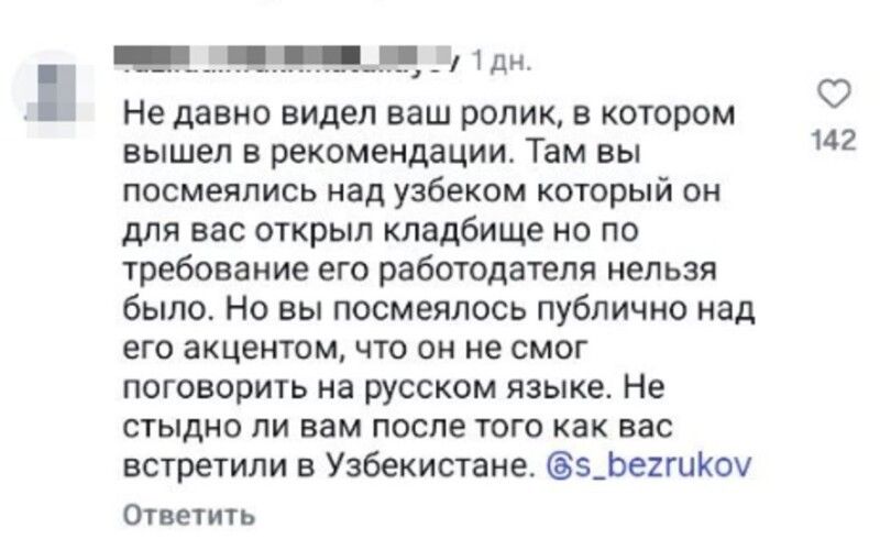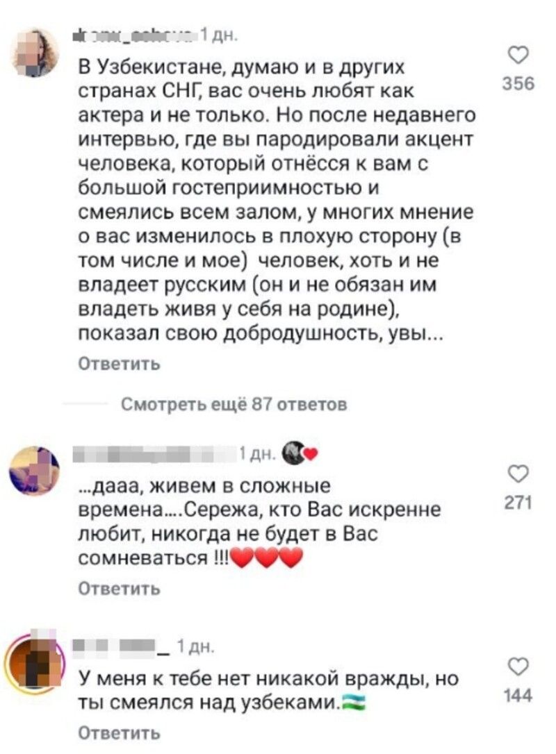 В ответ на критику Безруков записал видеообращение, где назвал происходящее провокацией, направленной на разжигание межнациональной розни и попытку "вбить клин" между народами. Он подчеркнул, что эту историю рассказывал и раньше, и везде она воспринималась с юмором и без негатива. Актер отдельно заявил, что с большим уважением относится к узбекским традициям, знает, как его ждут и любят в Узбекистане, и отвечает зрителям взаимностью.На фоне скандала в соцсетях напомнили и о том, что, по данным ВЦИОМ, россияне признали Сергея Безрукова лучшим актером 2025 года, что подчеркивает масштаб общественного внимания к его словам и поступкам. Некоторые интернет-пользователи уверены, что актёру следует быть более осмотрительным и осторожным в наше непростое время. Другие же уверены, что обида и ущемление на пустом месте - признак недалёкого ума. Представители великой нации сами охотно смеются над собой, остальные же готовы кричать об унижении достоинства из-за пустяка.