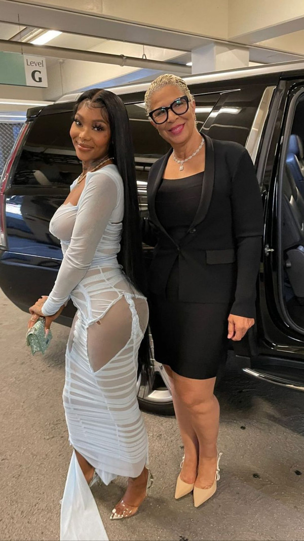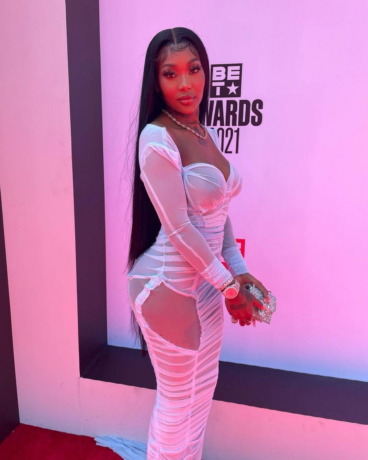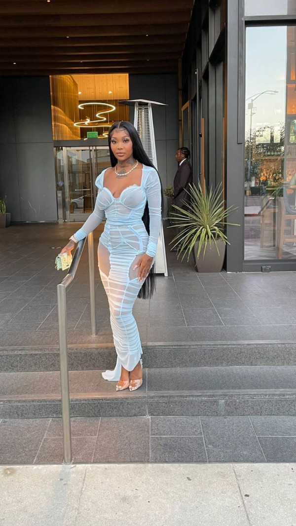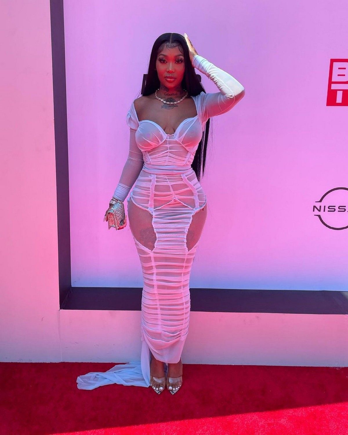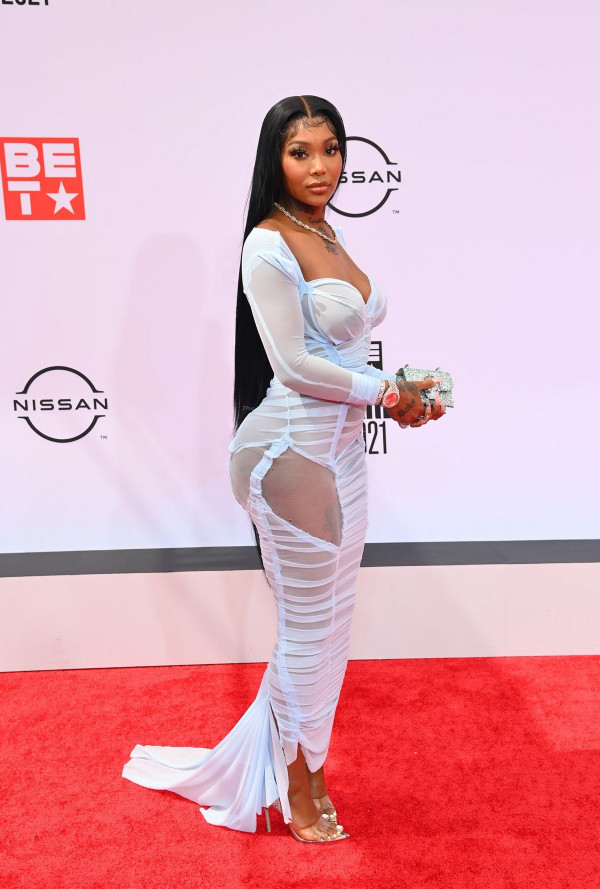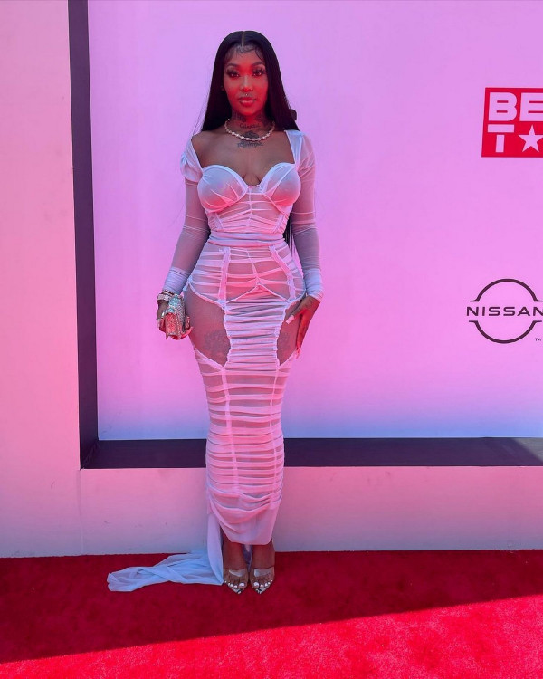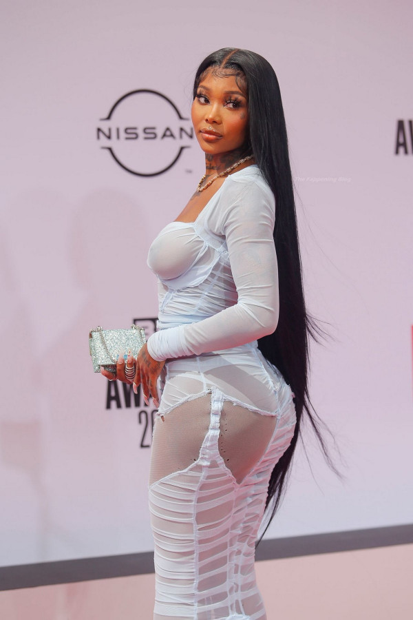 25-летняя американская певица и автор песен Саммер Уокер (Summer Walker) в просвечивающем платье на премии BET Awards в Microsoft theatre в Лос-Анджелесе.