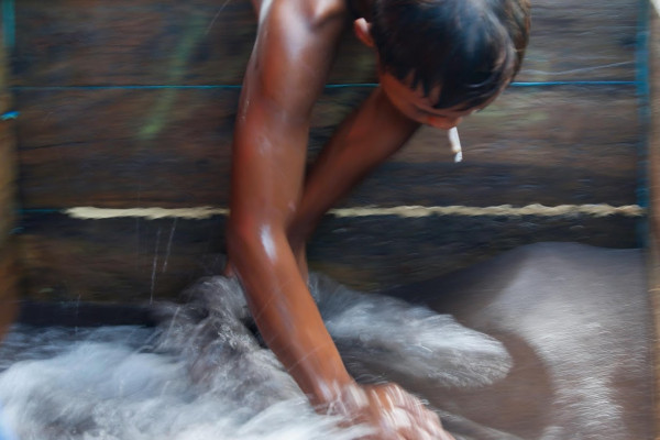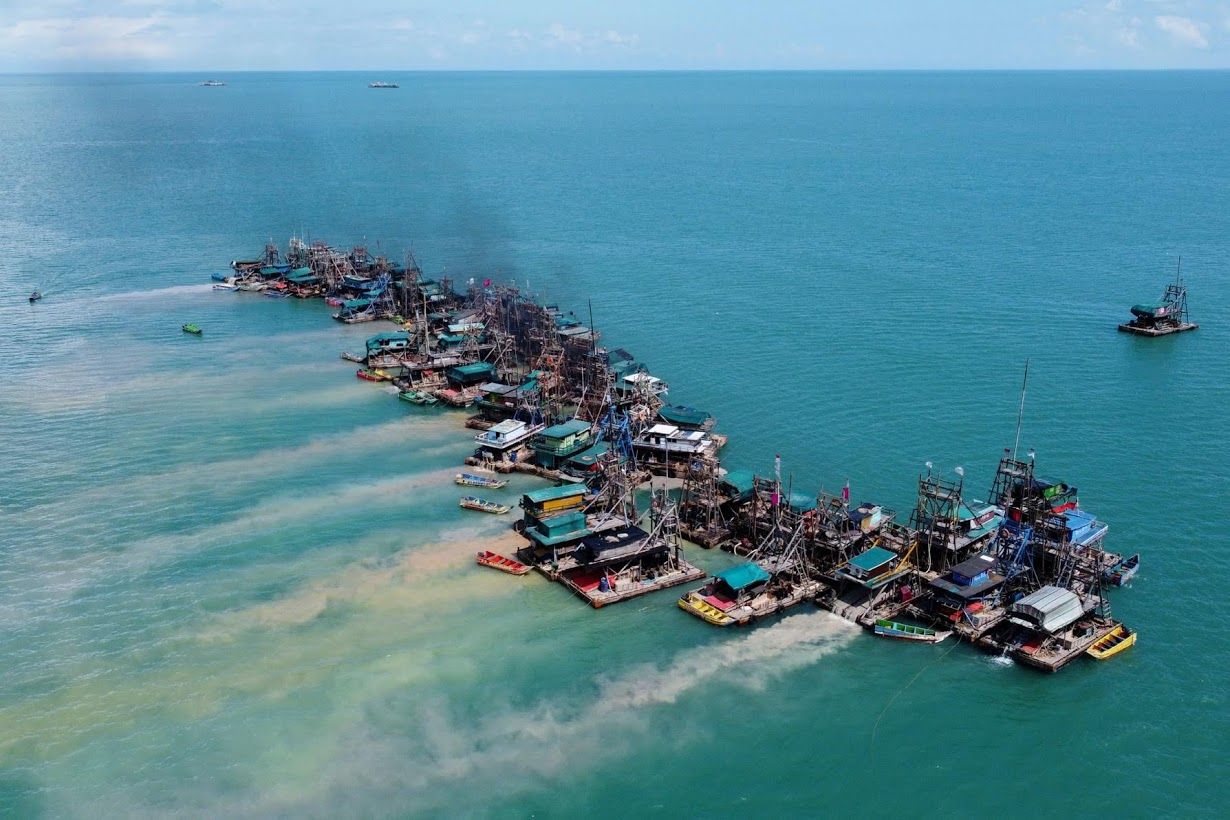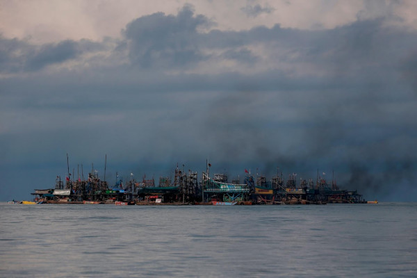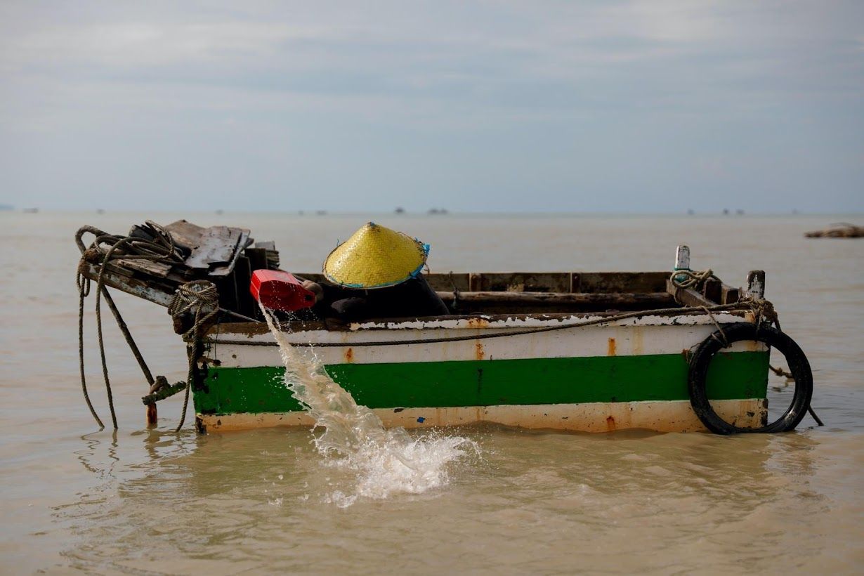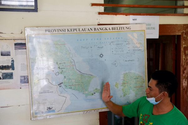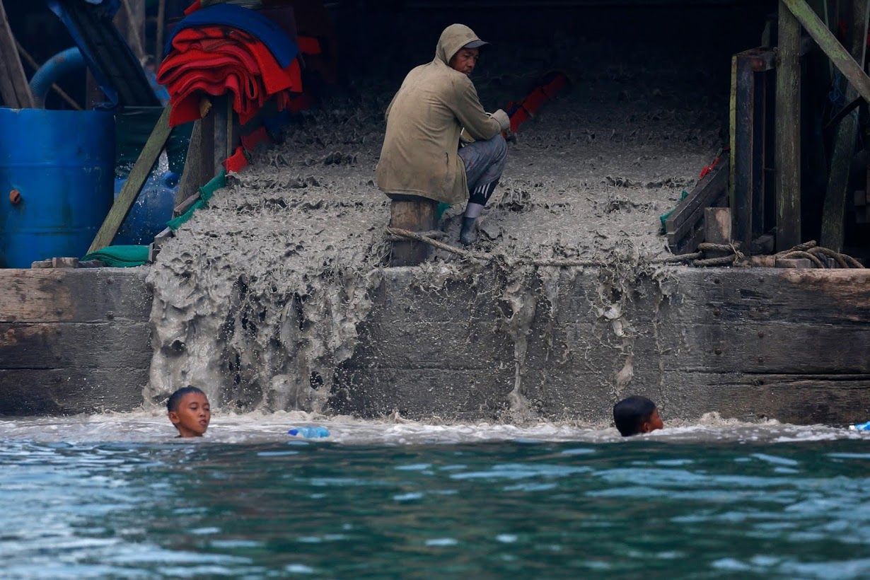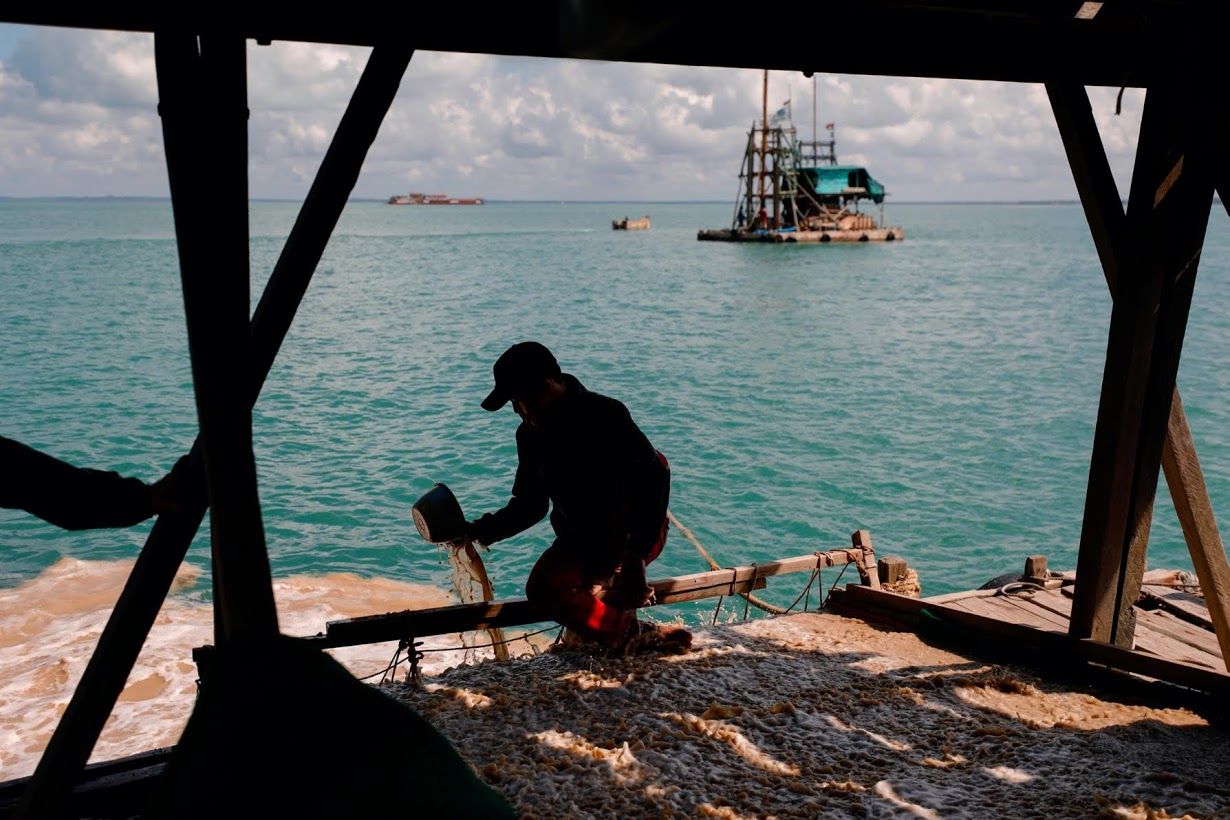 От берегов индонезийского острова Бангка шахтеры ежедневно отправляются на лодках к десяткам грубо построенных деревянных понтонов, разбросанных вдоль побережья, которые оборудованы для выемки со дна прибыльных месторождений оловянной руды.