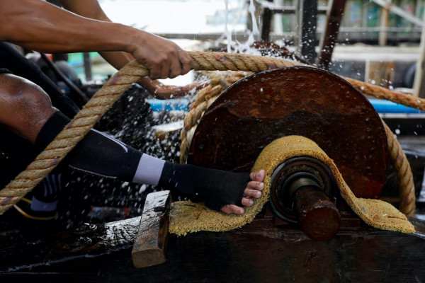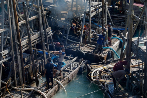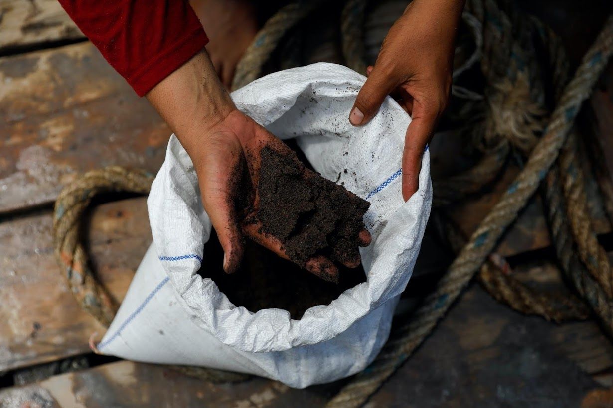 Индонезия - крупнейший в мире экспортер олова, используемого во всем, от упаковки пищевых продуктов до электроники, а теперь и зеленых технологий.Месторождения в горном узле Банка-Белитунг интенсивно эксплуатировались на суше, в результате чего часть островов у юго-восточного побережья острова Суматра напоминала лунный ландшафт с огромными кратерами и очень кислыми бирюзовыми озерами.Вместо этого шахтеры обращаются к морю."На суше наши доходы уменьшаются. Запасов больше нет", - сказал 51-летний Хендра, который перешел на работу в морскую добычу олова около года назад после десяти лет работы в этой отрасли.- В океане гораздо больше запасов."Хендра, который, как и многие индонезийцы, использует одно имя, управляет шестью понтонами, каждый из которых укомплектован тремя-четырьмя рабочими, с трубами длиной более 20 метров, чтобы всасывать песок с морского дна.Перекачиваемая смесь воды и песка проходит через слой пластиковых ковриков, которые захватывают блестящий черный песок, содержащий оловянную руду.Шахтерам платят от 70 000 до 80 000 рупий (от 4,90 до 5,60 долларов) за кг оловянного песка, который они накачивают, а понтон обычно производит около 50 кг в день, сказал Хендра.Огромная экспансия в сочетании с сообщениями о незаконных шахтерах, нацеленных на морские месторождения, усилила напряженность с рыбаками, которые говорят, что их уловы сильно снизились из-за постоянного вторжения на их рыболовные угодья с 2014 года.Власти время от времени расправляются с оловянной промышленностью, особенно с незаконной добычей, а оставшиеся земельные запасы часто труднодоступны или требуют тяжелой техники для эксплуатации.Тем не менее, рост цен на олово является стимулом для преодоления этих препятствий.Амри, нелицензированный шахтер из Бангки, сказал, что возобновил свои наземные операции после 14-месячного перерыва, когда цены на олово выросли из-за ужесточения мировых поставок.