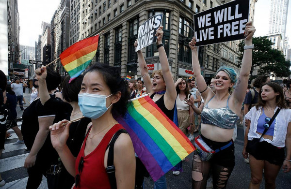 Десятки женщин вышли топлесс на ежегодный Марш лесбиянок (Dyke March) в Нью-Йорке в субботу, так как на главный парад гордости в воскресенье собралось меньшее количество участников, чем обычно, на фоне ограничений из-за COVID.