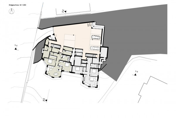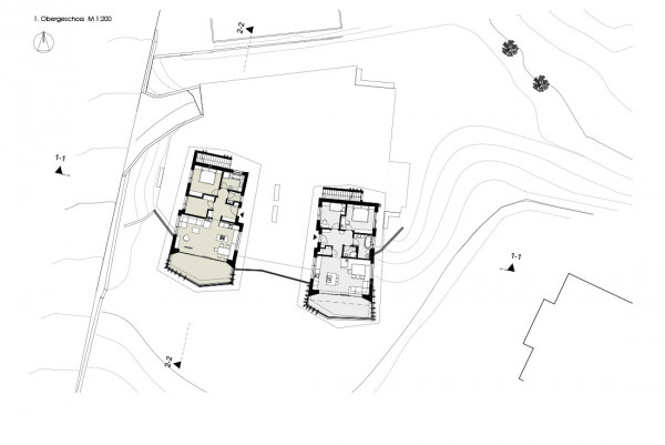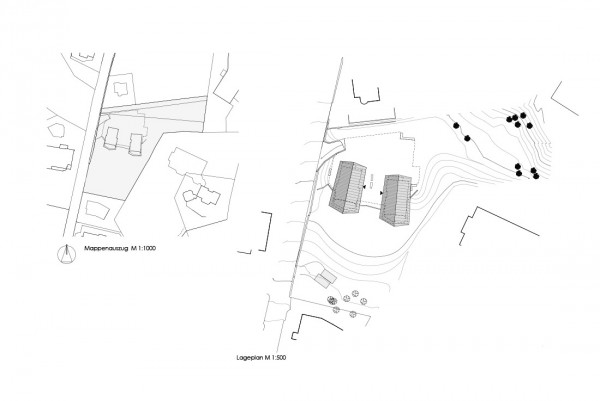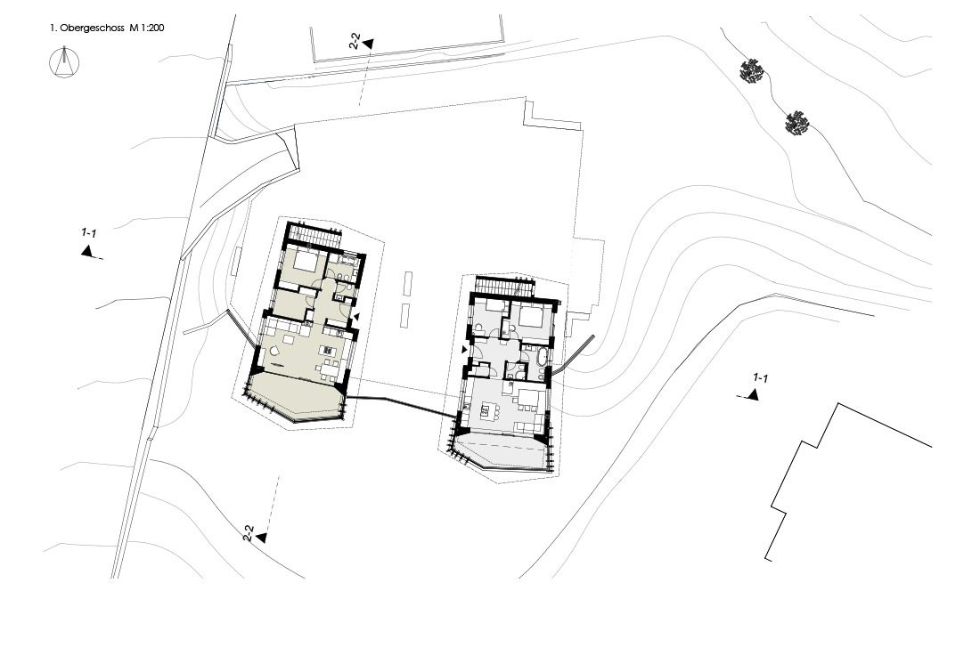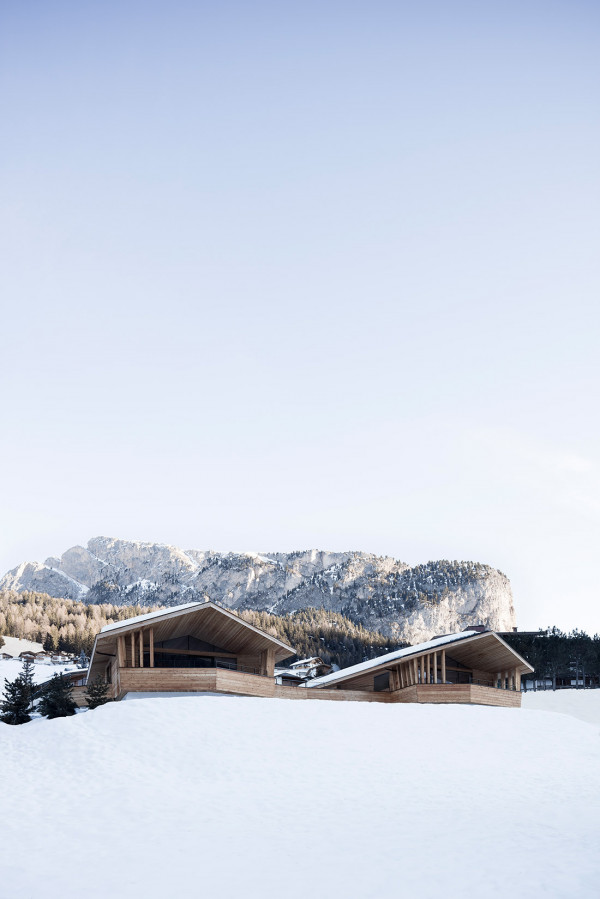 Частные дома расположены на наклонном участке в Сельве, который, расположенный в самом сердце Южно-Тирольских Доломитовых Альп, образует конец Валь-Гардены. Из-за того, что дома находятся на склоне холма, они только кажутся двухэтажными зданиями, смотрящими вниз, поскольку подвалы и общий гараж были построены под землей. На нижнем этаже две постройки соединены друг с другом, отдельные верхние этажи имеют остроконечные крыши, ориентированные на юг и слегка повёрнутые друг к другу, что подчёркивает типичный характер местной архитектуры. С массивным, оштукатуренным цокольным этажом и двумя верхними этажами, обшитыми деревянными панелями, даже выбор материала соответствует традиционному региональному строительству, в то время как чёткий и угловатый дизайн эскиза представляет собой новую интерпретацию альпийской архитектуры.