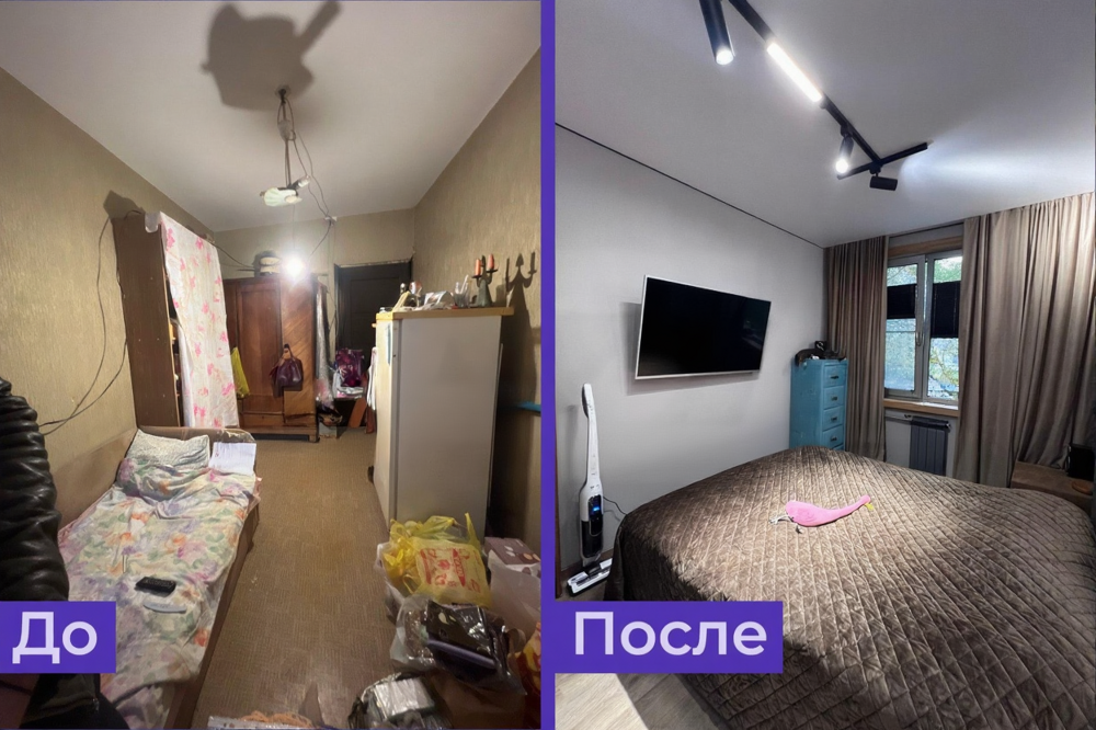 Квартиру за двенадцать с половиной миллионов рублей купил обычный мужчина по имени Александр. Он вложил ещё семь миллионов в капитальный ремонт: полностью заменил коммуникации, провёл четыре профессиональные обработки от тараканов, обновил стены, полы и потолки. За год из убитой двушки получилась современная и уютная жилплощадь.