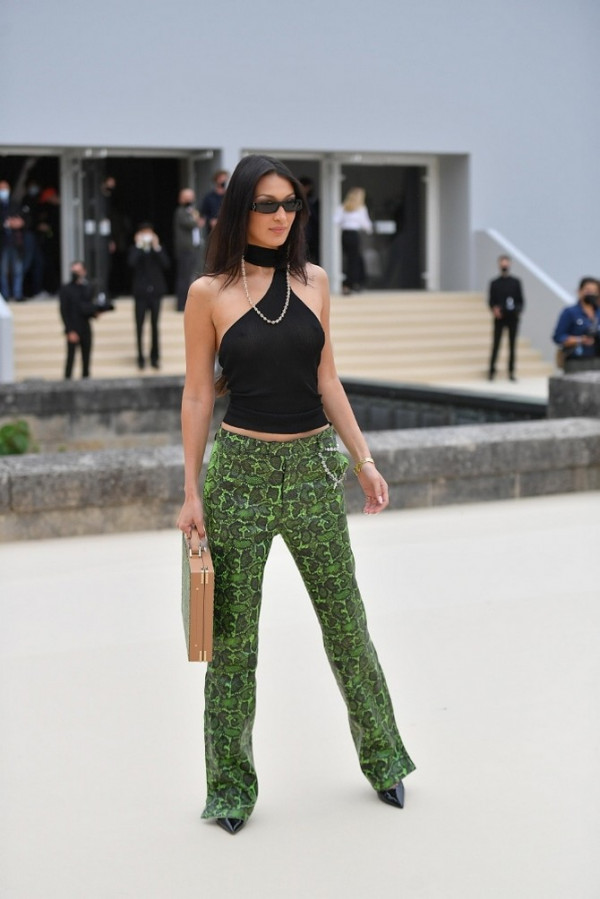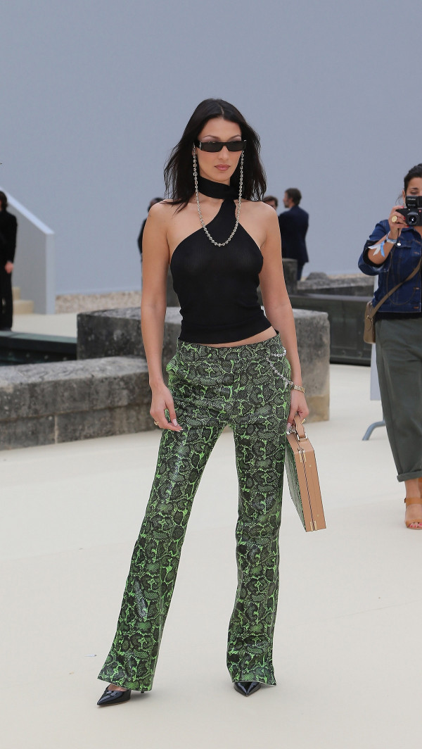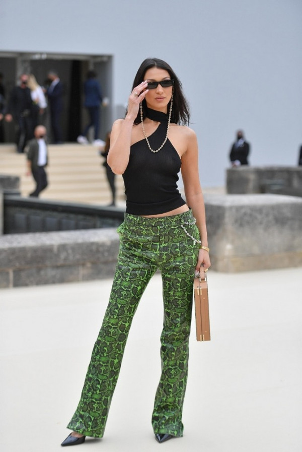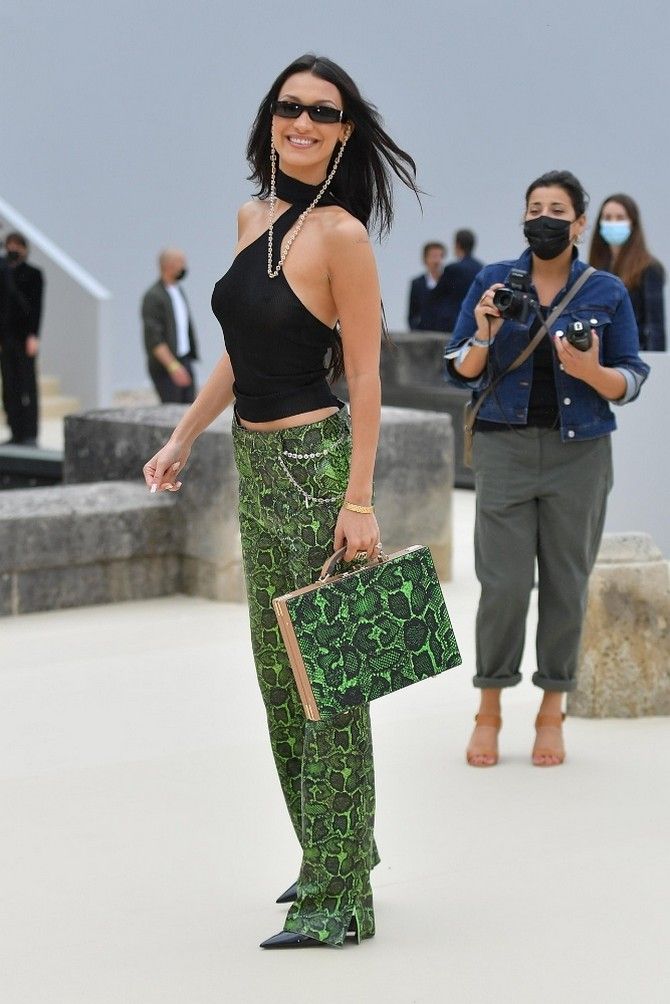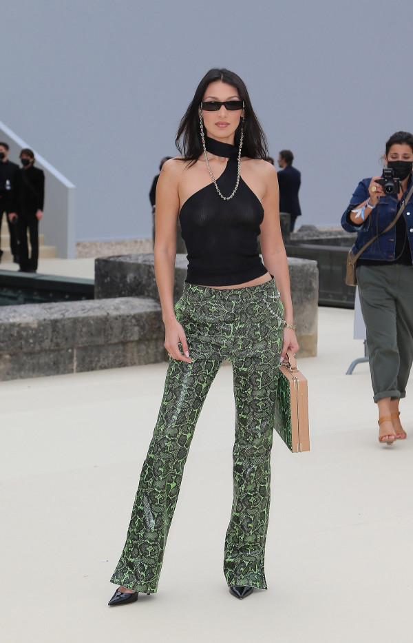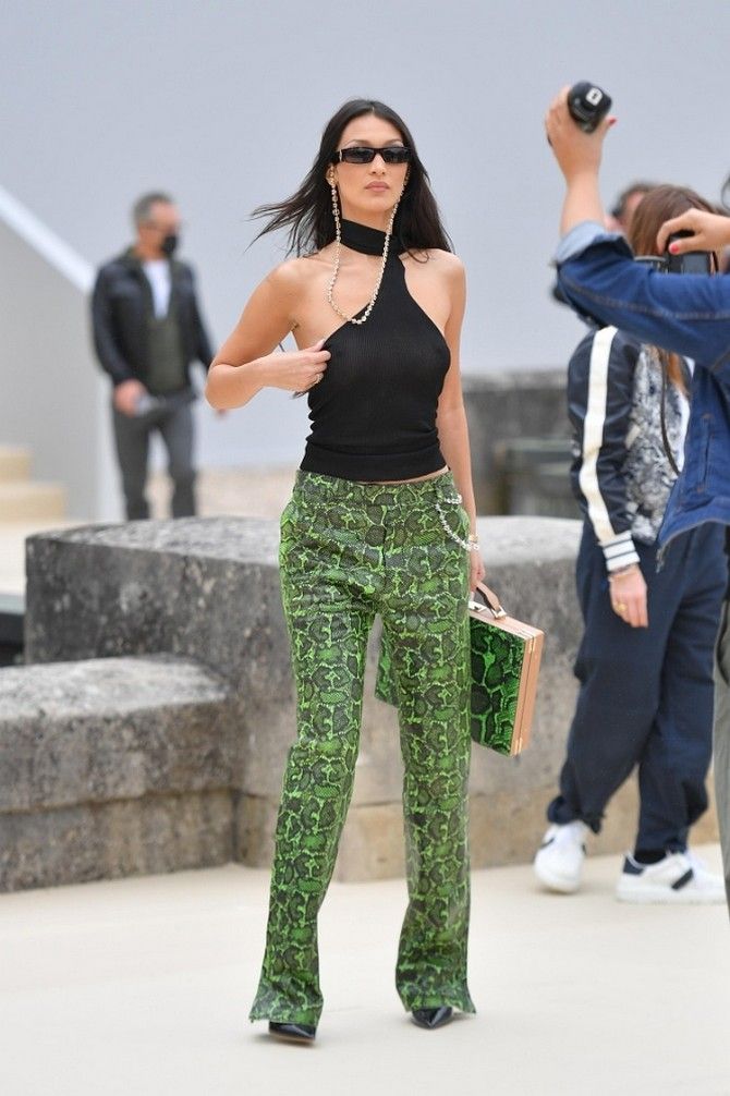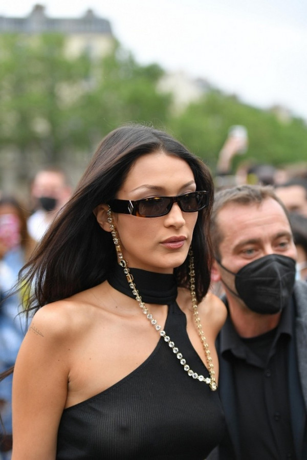 24-летняя американская супермодель палестинского происхождения Белла Хадид (Bella Hadid) в просвечивающем топе без бюстгальтера в Париже.